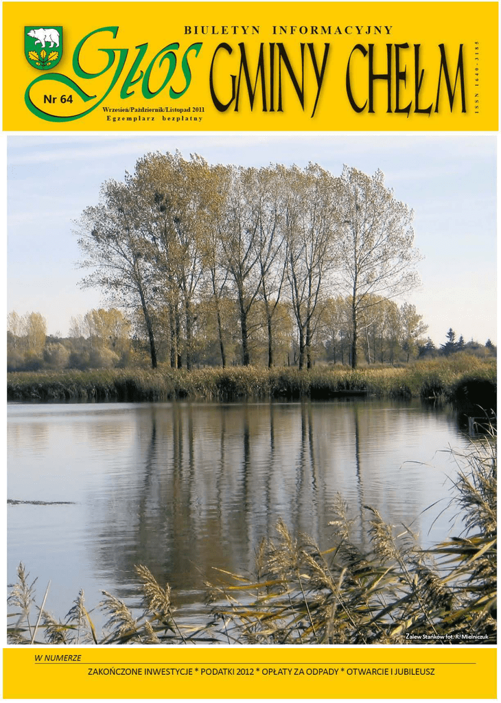 Głos SZEŚĆ RADOSNYCH SZKÓŁ Żółtańce Staw Strupin D. Stołpie Okszów Uher Ukończono prace przy budowie szkolnych placów zabaw przy szkołach w Żółtańcach, Stawie, Strupinie Dużym, Stopiu, Uhrze (wykonawca SUN + z Kobylnicy) oraz w Okszowie (wykonawca Firma Hydro – Wielkopolska z Poznania) w ramach programu „Radosna Szkoła”. Cała inwestycja została zrealizowana do końca października i kosztowała łącznie prawie 800.000 zł. Dofinansowanie to 50 % zadania. Place zabaw zostały odebrane przy udziale przedstawiciela Ministerstwa Edukacji Narodowej. * We wrześniu zostały zakończone prace przy budowie przydomowych oczyszczalni ścieków – etap II (1/3 kosztów ponieśli mieszkańcy). W ramach inwestycji wybudowano 130 oczyszczalni. Wykonawcą inwestycji była firma ECOINSBUD z Chełma. Koszt zadania 1.3 mln zł. * W październiku zakończono prace przy budowie wodociągów na terenie Gminy Chełm w miejscowościach: Chełm – Okszów, Janów boczna ul. Prusa, Pokrówka ul. Łanowa , Żółtańce – Kolonia ul. Radosna, Żółtańce do zbiornika. Koszt zadania 196 tys. Wykonawcą była firma TEHNOBUD z Chełma. * Zakończono budowę placu i zatoki parkingowej koło kościoła w Okszowie. Wykonawcą zadania była Firma PERFEKT z Chełma. Koszt zadania to 240 tys. zł. Dofinansowanie z PROW-u wyniosło 60 %. 3 Głos PREZENT NA 25 - LECIE 2 października uroczyście oddano do użytku, po kapitalnym remoncie, budynek Ośrodek Kultury w Żółtańcach. Zbiegło się to z obchodami jubileuszu 25-lecia powstania Ośrodka. W uroczystości wzięli udział m.in. Krzysztof Grabczuk – wicemarszałek województwa lubelskiego, Wiesław Kociuba – wójt Gminy Chełm, Lucjan Piotrowski - zastępca wójta, ks. Damian Ziętek - wikariusz parafii pw. Św. Rodziny, Zbigniew Piebiak - właściciel Firmy Perfekt (wykonawca) oraz licznie przybyli mieszkańcy wsi i kolonii Żółtańce. Po wystąpieniach dyrektora Ośrodka Ryszarda Mielniczuka oraz gości honorowych Wiesława Kociuby i Krzysztofa Grabczuka, nastąpiło przecięcie wstęgi oraz poświęcenie obiektu. W części artystycznej jako gość specjalny wystąpił wokalista Mariusz Matera oraz działające przy Ośrodku Kultury - Zespół NEUTRALNI, Grupa Wokalna GAMMA, Kapela KATARYNA, Kabaret DUNIA, Zespół RAMIR. Wystawa rękodzieła Edyty Polak uświetniała wystrój Ośrodka. Przypominamy, że zadanie kosztowało 340 tys. zł i zostało dofinansowane w 60% z Programu Rozwoju Obszrów Wiejskich. rm UROCZYŚCIE W STOŁPIU 3 października w Zespole Szkół w Stołpiu odbyła się uroczystość związana z oficjalnym otwarciem szkoły po kapitalnym remoncie, który obejmował budynek oświatowy, budowę wielofunkcyjnego boiska oraz parkingu. W uroczystość wzięli udział: Grzegorz Raniewicz – poseł na Sejm RP, Krzysztof Grabczuk – wicemarszałek województwa lubelskiego, Wiesław Kociuba – wójt Gminy Chełm, proboszcz Parafii Podgórze ks. Marek Żyszkiewicz, Lech Lepianko dyrektor Biura Obsługi Szkół oraz miejscowy radny Zbigniew Słoniewski. Dyrektor szkoły Hanna Elak powitała gości i wraz z przewodniczącą Rady Rodziców Beatą Radziszewską oraz przewodniczącą Samorządu Uczniowskiego Darią Bielak, podziękowały za wsparcie i pomoc w pozyskaniu funduszy na remont, modernizację i zagospodarowanie terenu wokół szkoły. Dokonano przecięcia wstęgi oraz poświęcenia wyremontowanych obiektów. Uczniowie pod kierunkiem nauczycieli: Ewy Tywoniuk i Magdaleny Zabadały przedstawili część artystyczną: ,,Romeo i Julia wczoraj i dziś” oraz odbył się koncert piosenek dedykowanych każdemu z gości w wykonaniu uczennicy Karoliny Stangryciuk. Na zakończenie rodzice, nauczyciele i pracownicy szkoły zaprosili wszystkich na poczęstunek. Remont budynku szkoły i boiska kosztował prawie 2 mln zł, 80 % to dofinansowanie z RPO. Parking został wybudowany z własnych funduszy i kosztował 235 tys. zł. ZSS 4 Głos Ze smutkiem informujemy, że 29 listopada zmarł Jan Franczak, miał 63 lata. Uroczystość pogrzebowa odbyła się 30 listopada w kościele w Nowych Depułtyczach. Żegnała go rodzina, społeczność Gminy Chełm, wójtowie i pracownicy urzędu gminy, radni i strażacy ze wszystkich jednostek OSP z terenu gminy. Jan Franczak pełnił przez 32 lata funkcję sołtysa wsi Weremowice. Jako młody strażak ponad 35 lat temu został naczelnikiem OSP w Weremowicach i tę funkcję pełnił do ostatnich dni. Udzielał się społecznie Jan Franczak przy budowie drogi przez wieś, budowie 1948 - 2011 remizy strażackiej. Umiał porozumieć się z młodzieżą, którą rokrocznie przygotowywał do zawodów strażackich. Dbał o sprzęt i mienie OSP. Za zasługi dla pożarnictwa był odznaczony brązowym, srebrnym i złotym medalem. Był wielkim społecznikiem, wielkim człowiekiem. Wyrazy współczucia rodzinie zmarłego składa w imieniu własnym i wszystkich osób uczestniczących w uroczystości pogrzebowej Wójt Gminy Chełm Wiesław Kociuba. 21 października w wieku 90 lat zmarł Stanisław Madejek. Msza żałobna odbyła się w kościele w wDepułtyczach. W latach 1958-1966 był sekretarzem Gromadzkiej Rady Narodowej w Zagrodzie, następnie od 1968 do 1973 r. przewodniczącym Gromadzkiej Rady Narodowej w Pokrówce. Od 1974 r. do 1989 r. pracował w Urzędzie Gminy Chełm Stanisław Madejek na różnych stanowiskach m.in. referent rolny, inspektor ds. kultury 1921 - 2011 i opieki społecznej. Odznaczony Brązowym Krzyżem Zasługi w 1961 r., Złotym Krzyżem Zasługi w 1978 r., Odznaką 1000-lecia w 1966 r. oraz Zasłużony dla Województwa Chełmskiego w 1984 r. Składamy wyrazy współczucia rodzinie zmnarłego. 3,5 MLN NA KANALIZACJĘ PODPISANIE WNIOSKU Z UKRAIŃCAMI 27 września Gminę Chełm, odwiedziła delegacja Ukraińska z miasta Chust na Ukrainie w składzie: Michael Rivis – z-ca mera Miasta Chust, Vladimir Erfan – sekretarz Miasta Chust oraz Andriy Vartsaba doradca mera. Delegacj