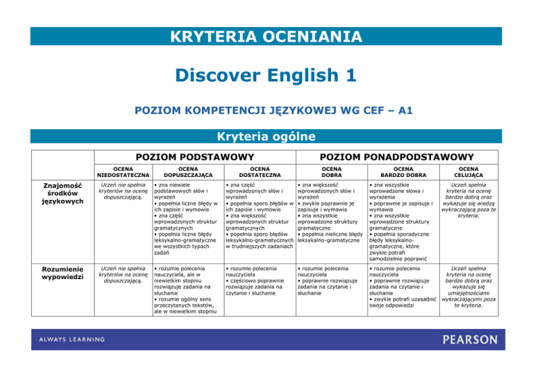 POZIOM KOMPETENCJI JĘZYKOWEJ WG CEF – A1