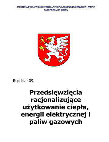 ZZA AŁŁO OŻŻEEN NIIA AD DO O PPLLA AN NU U ZZA AO OPPA ATTR RZZEEN NIIA AW WC CIIEEPPŁŁO O,, EEN NEER RG GIIĘĘ EELLEEK KTTR RY YC CZZN NĄ Ą II PPA ALLIIW WA A G GA AZZO OW WEE M MIIA ASSTTA AD DĘĘBBIIC CA A Rozdział 09 Przedsięwzięcia racjonalizujące użytkowanie ciepła, energii elektrycznej i paliw gazowych Nr projektu: X-2796.09 Str./str.: 1/10 KOD DCC Spis treści: 9.1 Wprowadzenie – ogólne możliwości racjonalizacji użytkowania energii ........ 2 9.2 Racjonalizacja użytkowania mediów energetycznych w mieście Dębica ........ 6 9.3 Zarządzanie użytkowaniem energii w obiektach użyteczności publicznej ...... 8 Nr projektu: Str./str.: 2/10 X-2796.09 KOD DCC 9.1 Wprowadzenie – ogólne możliwości racjonalizacji użytkowania energii Podstawowe strategiczne założenia mające na celu racjonalizację użytkowania ciepła, energii elektrycznej i paliw gazowych na obszarze miasta są definiowane w sposób następujący: 1. dążenie do jak najmniejszych opłat płaconych przez odbiorców (przy spełnieniu warunku samofinansowania się sektora paliwowo - energetycznego), 2. minimalizacja szkodliwych dla środowiska skutków funkcjonowania sektora paliwowo – energetycznego na obszarze miasta, 3. zapewnienie bezpieczeństwa i pewności zasilania w zakresie ciepła energii elektrycznej i paliw gazowych. Skutki racjonalizacji użytkowania energii biorąc pod uwagę ostatnie lata są następujące: Ad1. – dążenie do jak najmniejszych opłat płaconych przez odbiorców jest zauważalne szczególnie w zakresie systemów ciepłowniczych, których ceny wytworzenia ciepła jak i jego przesyły są na porównywalnym poziomie. Możliwość utrzymania takiego poziomu cen jest podniesienie sprawności wytwarzania ciepła, jak również ograniczenie kosztów jego przesyłu przez przedsiębiorstwa ciepłownicze. Tendencja utrzymania porównywalnych cen energii nie dotyczy systemu gazowniczego. Z porównania taryf gazowych wynika, że w ostatnich latach obserwujemy istotny wzrost cen tego nośnika energii. – po stronie odbiorców również obserwowane są działania zmierzające do obniżenia kosztów użytkowania nośników energii poprzez podejmowanie działań termomodernizacyjnych jak również użytkowanie urządzeń o większej sprawności i mniejszej energochłonności. Proces ten można zaobserwować w systemie ciepłowniczym, którego moc zamówiona zmniejsza się corocznie w wyniku tego typu działań. Nr projektu: Str./str.: 3/10 X-2796.09 KOD DCC Ad2. – Zwiększenie sprawności wytwarzania ciepła, jak również stosowanie urządzeń odpylających o większej sprawności powodują, że istniejące źródła ciepła zmniejszają wskaźniki emisji do zanieczyszczeń co w sposób istotny poprawia stan powietrza na terenie miasta. – Również odbiorcy, którzy przeprowadzili działania termomodernizacyjne są elementem, który wpływa na zmniejszenie emisji zanieczyszczeń do atmosfery. – Kolejnym działaniem wpływającym na zmniejszenie emisji zanieczyszczeń było przyłączenie do sieci ciepłowniczej głównie przez MPEC Sp. z o.o. odbiorców, którzy do tej pory byli zaopatrywani w ciepło z niskosprawnych urządzeń. Kontynuacja działań w zakresie racjonalizacji użytkowania ciepła, energii elektrycznej i paliw gazowych będzie w dalszym ciągu polegać na: W odniesieniu do źródeł ciepła: 1. Popieraniu przedsięwzięć polegających na likwidacji małych lokalnych kotłowni węglowych i włączanie ich do sieci ciepłowniczej bądź przebudowie ich na paliwo ekologiczne: gaz ziemny, olej opałowy, gaz płynny, paliwa odnawialne. 2. Propagowaniu i popieraniu inwestycji źródeł budowy kompaktowych wytwarzających ciepło i energię elektryczną w skojarzeniu i zasilanych paliwem ekologicznym (gaz ziemny, olej opałowy, gaz płynny, paliwa odnawialne). 3. Dążenie do rozbudowę likwidacji systemu ciepłowniczych) i indywidualnego ciepłowniczego gazowniczego ogrzewania (budowa (stosowanie węglowego poprzez kompaktowych węzłów indywidualnych instalacji ogrzewania gazowego). 4. Podejmowaniu przedsięwzięć związanych z utylizacją i bezpiecznym składowaniem odpadów komunalnych (selekcja odpadów, kompostowanie oraz spalanie wyselekcjonowanych odpadów, wykorzystywanie ich jako surowce wtórne, spalanie gazu wysypiskowego z ekonomicznie uzasadnionym wykorzystaniem ich energii). 5. Popieraniu przedsięwzięć prowadzących do wykorzystywania energii odpadowej. Nr projektu: Str./str.: 4/10 X-2796.09 KOD DCC 6. Wykonywaniu wstępnych analiz techniczno ekonomicznych dotyczących możliwości wykorzystania lokalnych źródeł odnawialnych (energia wiatru, wodna, geotermalna, słoneczna, biomasy) na potrzeby miasta. W odniesieniu do użytkowania ciepła: 1. Podejmowaniu przedsięwzięć wykorzystania energii i termomodernizacja związanych cieplnej budynków, w ze obiektach zwiększeniem gminnych modernizacja efektywności (termorenowacja wewnętrznych systemów ciepłowniczych oraz wyposażanie w elementy pomiarowe i regulacyjne, wykorzystywanie ciepła odpadowego) a także wspieranie organizacyjno – prawne przedsięwzięć użytkowników termomodernizacyjnych indywidualnych (np. prowadzenie podejmowanych doradztwa, przez audytingu energetycznego). 2. Dla nowo projektowanych obiektów wydawaniu decyzji o warunkach zabudowy i zagospodarowania terenu uwzględniających proekologiczną i energooszczędną politykę państwa i miasta (np. użytkowanie energii przyjaznej ekologicznie, stosowanie energooszczędnych technologii w budownictwie i przemyśle, opłacalne wykorzystywanie energii odpadowej i inne). 3. Popieraniu i promowaniu indywidualnych działań właścicieli lokali polegających na przechodzeniu do użytkowania na cele grzewcze i sanitarne ekologicznie czystszych rodzajów paliw lub energii elektrycznej albo energii odnawialnej. Nr projektu: X-2796.09 Str./str.: 5/10 KOD DCC W odniesieniu do użytkowania energii elektrycznej: 1. Wpr