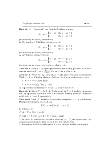Zadanie 2. Niech (X, d) b¦dzie przestrzeni¡ metryczn¡, pokaza¢, »e funkcja