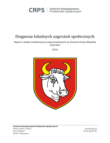 Diagnoza lokalnych zagrożeń społecznych Raport z badań ankietowych przeprowadzonych na zlecenie Gminy Miejskiej Człuchów 2016 Centrum Rozwiązywania Problemów Społecznych Pałac Kultury i Nauki Plac Defilad 1 00-901 Warszawa [email protected] tel 22 620 29 29 SP)S TREŚC) Wstęp ......................................................................................................................................................................................4 Położenie gminy, dane administracyjne i geograficzne .....................................................................................5 Metryka gminy ....................................................................................................................................................................7 Rynek alkoholowy.........................................................................................................................................................7 Działalność Miejskiej Komisji Rozwiązywania Problemów Alkoholowych ..........................................7 Działalność Miejskiego Ośrodka Pomocy Społecznej.....................................................................................8 Skala problemów społecznych ............................................................................................................................. 11 Nadużywanie alkoholu i innych substancji psychoaktywnych .......................................................... 11 Przestępczość .......................................................................................................................................................... 12 Zasoby w zakresie przeciwdziałania problemów społecznych .............................................................. 12 Szkolenia dla członków MKRPA, pracowników MOPS oraz świetlic ............................................... 12 Świetlice .................................................................................................................................................................... 13 Grupy wsparcia ...................................................................................................................................................... 13 Centrum Konsultacyjno-)nformacyjne ds. Uzależnień ........................................................................... 14 Oddziaływania profilaktyczne ......................................................................................................................... 15 Lokalne zagrożenia społeczne w grupie dorosłych mieszkańców ............................................................. 18 Grupa badana ............................................................................................................................................................... 18 Cel badania .................................................................................................................................................................... 19 Podstawowe problemy społeczne w opinii mieszkańców Gminy Miejskiej Człuchów ................ 19 Spożywanie alkoholu oraz związane z nim inne problemy społeczne ................................................ 22 Substancje psychoaktywne: nikotyna ............................................................................................................... 28 Substancje psychoaktywne: narkotyki i dopalacze...................................................................................... 29 Przemoc w rodzinie................................................................................................................................................... 33 Przekonania dotyczące wychowania dzieci ............................................................................................... 33 Zjawisko przemocy w rodzinie ........................................................................................................................ 36 Hazard ............................................................................................................................................................................. 39 Cyberprzemoc i uzależnienie od )nternetu ..................................................................................................... 41 Badania sprzedawców napojów alkoholowych ................................................................................................. 44 Grupa badana ............................................................................................................................................................... 44 Problemy społeczne w środowisku dzieci i młodzieży ................................................................................... 55 Badane placówki oświatowe ................................................................................................................................. 55 Centrum Rozwiązywania Problemów Społecznych Pałac Kultury i Nauki Plac Defilad 1 00-901 Warszawa [email protected] tel 22 620 29 29 Strona Wyniki badań ............................................................................................................................................................... 45 2 Cel badania .................................................................................................................................................................... 45 Metodologia .................................................................................................................................................................. 56 Cel badania .................................................................................................................................................................... 56 Wyniki badań ............................................................................................................................................................... 57 Śr