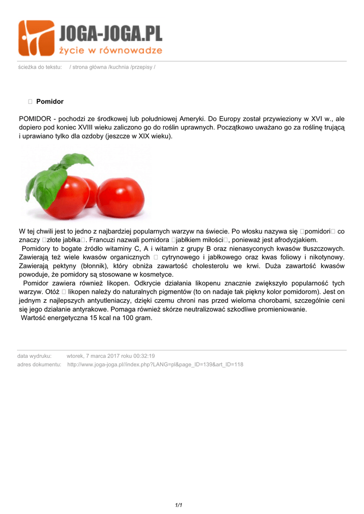 Pomidor POMIDOR - pochodzi ze środkowej lub - Joga-Joga
