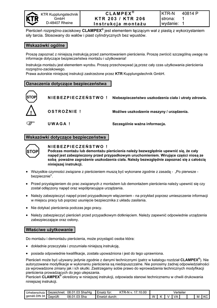 CLAMPEX® KTR 203 / KTR 206 Instrukcja montażu KTR