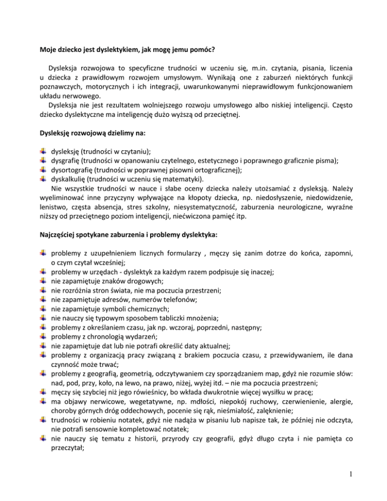 Moje dziecko jest dyslektykiem, jak mogę jemu pomóc?