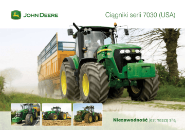 Ciągniki serii 7030 (USA) Niezawodność jest naszą siłą CHARAKTERYSTYKA TECHNICZNA CIĄGNIKÓW SERII 7030 (USA)* MODEL 7730 7830 Moc znamionowa (97/68 EC) 190 KM (140 kW) 205 KM (151 kW) 220 KM (162 kW) Moc maksymalna (97/68 EC) 206 KM (152 kW) 165 (225) 243 KM (179 kW) Moc znamionowa (z Inteligentnym Zarządzaniem Mocą) wg 97/68EC (transport i praca z WOM w czasie jazdy) 220 KM (162 kW) 235 KM (173 kW) 250 KM (184 kW) OSIĄGI SILNIKA DANE TECHNICZNE SILNIKA 7930 Znamionowa prędkość obrotowa 2100 obr/min Typ PowerTech Plus, układ wtryskowy Common Rail, 4 zawory na cylinder, spełnia normę emisji spalin Euro IIIA Układ dolotowy Turbosprężarka o zmiennej geometrii z chłodnicą powietrza doładowującego i chłodzonym układem recyrkulacji spalin (EGR) Wentylator chłodnicy Wentylator ze sprzęgłem lepkościowym sterowany temperaturowo Pojemność zbiornika paliwa 392 litry; 358 litrów przy drzwiach z prawej strony SKRZYNIE BIEGÓW AutoQuad Plus Automatyczne przełączenie 4 zakresów prędkości ze zmiennym rewerserem i modułami przełączania, dopasowywanie prędkości, Softshift i Field Cruise Zakres prędkości 20F/20R - wersje od 2.4 do 42 km/h, 42 km/h EcoShift lub 50 km/h WOM - TYLNY I PRZEDNI Typ - tylni Obroty silnika przy stiardowej prędkości obrotowej WOM Typ - WOM przedni Sterowany z kabiny, włączany i hamowany elektrohydraulicznie za pośrednictwem sprzęgła wielotarczowego chłodzonego olejem 540/1000 lub 540E/1000E/1000 obr/min, 45 mm, 20-rowków, 1000 obr/min lub 45 mm, 1000 obr/min +/- zesatw: 35 mm 540/ 1000 6 wałek: 35 mm, 6 / 21-rowków, odwracalny 1000: 1950 obr/min; 540E / 1000E: 1750 obr/min 540 / 1000: 1950 obr/min Typ 1 - 1000 obr/min, kierunek obrotów: lewy (wszystkie modele), Typ 2 - 1000 obr/min, kierunek obrotów: prawy (tylko 7730) lub Typ 3: 1000 obr/min, kierunek obrotów: prawy (7830/7930) UKŁAD HYDRAULICZNY Z kompensacją ciśnienia i natężenia przepływu zależnie od obciążenia i odrębną pompą osiowo-tłoczkową Maks. liczba zaworów SCV 4 x tył + 3 x przód (blok środkowy), łącznie: 7 3-PUNKTOWY UKŁAD ZAWIESZENIA Kategoria III N / III, cięgła dolne z zaczepami hakowymi Zawieszenie tylne Elektrohydrauliczny układ sterowania, elektroniczny pomiar oporu na cięgłach dolnych. Układ tłumienia. Zewnętrzne przyciski sterujące. Maksymalny udźwig na hakach Standard: 7493 kg (73,5 kN), opcja: 9177 kg (90,0 kN) Udźwig OECD na wys. 610 mm Standard: 6324 kg (62,0 kN), opcja: 7560 kg (74,0 kN) Zawieszenie przednie Kategoria III N, cięgła dolne z zaczepami hakowymi, udźwig: 5200 kg (49,0 kN) (OECD na wys. 610 mm: 3175 kg) PRZEDNIA OŚ Rodzaj zawieszenia Pasywne, hydropneumatyczne, Triple link z belką zaczepową i siłownikiem hydraulicznym Skok roboczy zawieszenia i siłowniki 100 mm, 2 siłowniki dwustronnego działania pełniące funkcję amortyzatorów KABINA Typ CommiView z fotelem ComfortCommi lub Active Seat; Pulpit CommiARM w modelach z przekładnią AutoPowr Redukcja/poziom hałasu Pasywny układ wyciszający, poziom hałasu we wnętrzu: 72 dB(A) Wyświetlacz Wyświetlacz w terminalu Commi Center i na słupku kabiny, w opcji odstępny ekran dotykowy Hydraulic TouchSet i kolorowy wyświetlacz GreenStar 2 zgodny z ISO WYMIARY I MASY Szerokość x wysokość x długość Z kołami o rozmiarze Maks. dopuszczalna masa całkowita przy 40 km/h 2.44 x 3.11 x 5.45 m 2.44 x 3.18 x 5.50 m 2.44 x 3.18 x 5.50 m 600/65R28 i 710/70R38 600/70R30 i 650/85R38 600/70R30 i 710/70R42 13 100 kg 13 100 kg 13 100 kg * Zastrzegamy sobie prawo do zmiany charakterystyki technicznej i konstrukcji. Wszelkie podane informacje, w szczególności fotografie, specyfikacje, opisy lub rysunki, nie stanowią oferty w rozumieniu art. 66 Kodeksu cywilnego. Niezawodność jest naszą siłą ul. Orzechowa 1, 62-002 Suchy Las tel. (061) 811 51 96, fax (061) 811 51 97 e-mail: [email protected] www.johndeere.pl Twój najbliższy John Deere Dealer 09.2006 JOHN DEERE POLSKA Sp. z o.o.