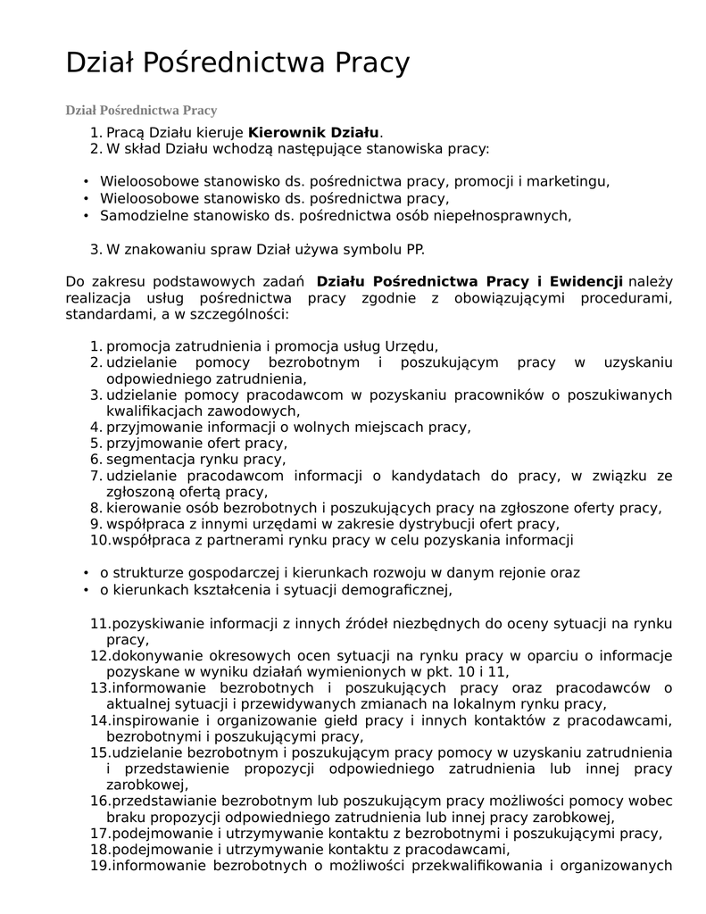 Dział Pośrednictwa Pracy