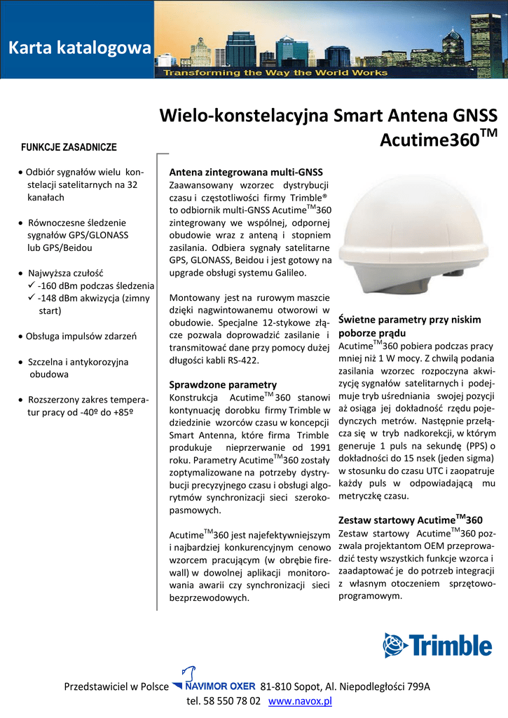 Ulotka wzorca czasu Acutime TM 360 Trimble