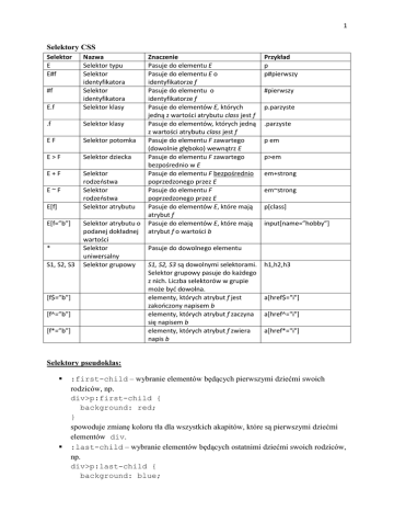:first-child – wybranie elementów będących pierwszymi dziećmi swoich