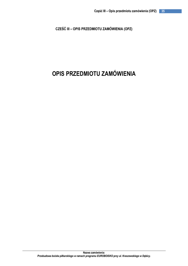 Część III – Opis przedmiotu zamówienia (OPZ) CZEŚĆ III – OPIS PRZEDMIOTU ZAMÓWIENIA (OPZ) OPIS PRZEDMIOTU ZAMÓWIENIA Nazwa zamówienia: Przebudowa boiska piłkarskiego w ramach programu EUROBOISKO przy ul. Kraszewskiego w Dębicy. 35 Część III – Opis przedmiotu zamówienia (OPZ) Przebudowa boiska piłkarskiego w ramach programu EUROBOISKO przy ul. Kraszewskiego w Dębicy. Zamówienie obejmuje: a. wykonanie i oddanie przedmiotu przetargu, zrealizowanego zgodnie z kosztorysem, projektem, zasadami wiedzy technicznej i sztuki budowlanej, b. obsługę geodezyjną robót i wykonanie inwentaryzacji powykonawczej, c. wykonanie niezbędnych prób, badań, pomiarów, zabezpieczeń, włączeń i odbiorów technicznych wraz z opłatami, d. ustalenie lokalizacji, wykonanie i utrzymanie niezbędnego zaplecza technicznego i placu składowego materiałów, doprowadzeniu odpowiednich mediów na czas budowy wraz z uzyskaniem warunków technicznych, e. ubezpieczenie placu budowy, f. uporządkowanie placu budowy, g. przywrócenie terenu do stanu pierwotnego (przejścia przez drogi, dojazdy, posesje) – Wykonawca winien dostarczyć po zakończeniu inwestycji oświadczenia właścicieli posesji o przywróceniu posesji do stanu pierwotnego, h. oznakowanie, zabezpieczenie niezbędnego terenu i ulic, i. opracowanie projektu organizacji ruchu na czas budowy, j. utrzymane przejezdności ulic i dojazdów do posesji w trakcie okresu realizacji. k. opracowanie instrukcji BIOZ l. prowadzenie robót w pobliŜu sieci uzbrojenia podziemnego wymaga wcześniejszego zgłoszenia do uŜytkownika sieci Wszystkie w / w elementy zamówienia zostaną ujęte w cenie ofertowej Wszystkie materiały zastosowane do realizacji zamówienia spełniać będą warunki określone w art. 10 ustawy z dnia 7 lipca 1994r. Prawo budowlane (Dz. U. nr 156 z 2006r. poz. 1118 ze zmianą Dz. U. nr 170 z 2006r. poz. 1217). Wykonawca będzie prowadził roboty zgodnie z przepisami Ustawy, Prawo Budowlane, Polskimi Normami i sztuką budowlaną a takŜe przepisami BHP a za skutki ewentualnych wypadków ponosi całkowitą odpowiedzialność cywilno-prawną. Wykonawca zabezpieczy i oznakuje teren budowy zgodnie z obowiązującymi w tym zakresie instrukcjami i przepisami bez dodatkowego wynagrodzenia. Wykonawca udzieli Zamawiającemu gwarancji na przedmiot umowy włącznie z wbudowanymi materiałami. Okres gwarancji i rękojmi ustala się na 36 miesięcy, liczonych od daty odbioru końcowego na całość zamówienia. Zakres inwestycji obejmuje: 1. Budowa boiska piłkarskiego 72 x 113 m (arena boiska 68 x 105 m o nawierzchni ze sztucznej trawy o wys. 6 cm); 2. Ogrodzenie boiska wraz z piłkochwytami, z bramą wjazdową i bramką wejściową; 3. Odwodnienie boiska; 4. Oświetlenie obiektu (6 słupów stalowych wys. 16 m); 5. MontaŜ bramek do piłki noŜnej. Sztuczna nawierzchnia boiska powinna posiadać: - kartę techniczną, - WaŜną aprobatę lub Rekomendację Techniczną ITB lub deklarację zgodności z normą PN-EN 15330, - Atest higieniczny, - Certyfikat FIFA Recommended 1 Star lub FIFA Recommended 2 Star lub badania laboratoryjne przeprowadzone w oparciu o standardy FIFA Quality Koncept. Nazwa zamówienia: Przebudowa boiska piłkarskiego w ramach programu EUROBOISKO przy ul. Kraszewskiego w Dębicy. 36 Część III – Opis przedmiotu zamówienia (OPZ) Wspólny Słownik Zamówień (CPV): Główny przedmiot 45.21.22.00-8 Słownictwo główne Roboty budowlane w zakresie budowy obiektów sportowych Termin wykonania zamówienia: 30.06.2010r. Mapka poglądowa Nazwa zamówienia: Przebudowa boiska piłkarskiego w ramach programu EUROBOISKO przy ul. Kraszewskiego w Dębicy. 37 38 Część III – Opis przedmiotu zamówienia (OPZ) Przedmiary: Przebudowa boiska piłkarskiego w ramach programu EUROBOISKO przy ul. Kraszewskiego w Dębicy. Nr Podstawa 1 2 5 6 KNR 0201 02130100 7 KNR 0201 02140100 3 4 3 17 18 KSNR 0001 04130201 9 10 11 12 13 14 15 16 KSNR 0001 02100200 KSNR 0001 03100400 19 20 3.1 21 22 23 Roboty pomiarowe przy powierzchniowych robotach pod nawierzchnie placów postojowych. Krotn. 0,8000 ha Usunięcie warstwy ziemi urodzajnej - humusu, za pomocą spycharek, grubość warstwy do 15 cm. Mechaniczne wykonywanie koryt na całej szerokości jezdni i chodników, głębokość 20 cm, kategoria gruntu I do IV-pod boiska Formowanie i zagęszczanie nasypów spycharkami gąsienicowymi 74 kw/100 km. nasypy o wysokości do 3,0 m. grunt kategorii I, II (b.i.nr 8/96)kształtowanie terenu 90% Plantowanie ręczne powierzchni gruntu rodzimego, grunt kategorii I, III.kształtowanie terenu10% Roboty ziemne wykon. koparkami chwytakow. 0,25 m3, spycharkami 75km z transp. samochodami samowył. do 5t do 1km lecz w ziemi w hałdach grunt kat. I, III (b.i.nr 8/96) Nakłady uzupłn. do tab. 0201-0213 za kaŜde dalsze 0,5km odl. transportu ponad 1km samochodami samowył. do 5t po terenie, drogach gruntów, grunt kat I, III (b.i.nr 8/96) 8 136,0000 m2 8 136,0000 m2 1 098,3600 m3 122,0400 m2 2 142,0000 m3 2 142,0000 m3 DrenaŜ i odprowadzenie do kan.deszcz fi 315 przy ul Kraszewskiego KNR 0201 02010500 KNR 0201 06100100 KNRw 0211 01450303 KNRw 0218 04080500 KNRw 0218 04080200 KNNR 0004 14170101 KNNR 0004 14180400 Analiza własna: KNNR 0004 14180100 KNNR 0004 14180600 KSNR 0004 13010200 8 Jednostka Roboty ziemne KNR 0201 01260100 KNR 0231 01010100 Analiza własna: KNR 0201 02350101 KNR 0201 05050100 2 Ilość Roboty przygotowawcze KNR 0201 01210200 1 Opis Roboty ziemne wykonywane koparkami przedsiębiernymi 0,25m3 z transportem urobku samochodami samowyładowczymi na odl. do 1km. kategoria gruntu III (b.i.nr 8/96) Podsypka filtracyjna z piasku w gotowym suchym wykopie wykonana z przygotowaniem kruszywa. Rurociągi drenarskie o średnicy 10,0 cm owijane włókniną Kanały z rur typu PVC o średnicy 315 mm łączone na wcisk Kanały z rur typu PVC o średnicy 160 mm łączone na wcisk Studzienki kanalizacyjne systemowe WAVIN o średnicy 315-425 mm, zamknięcie st
