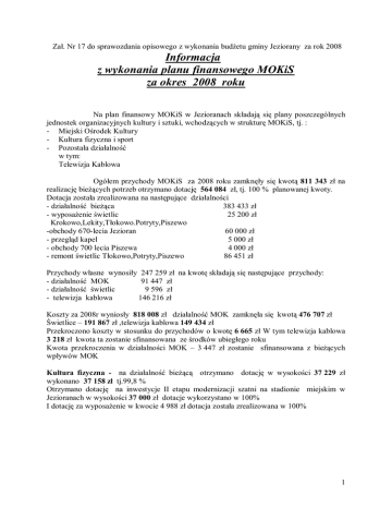 Informacja z wykonania planu finansowego MOKiS za okres 2008 roku
