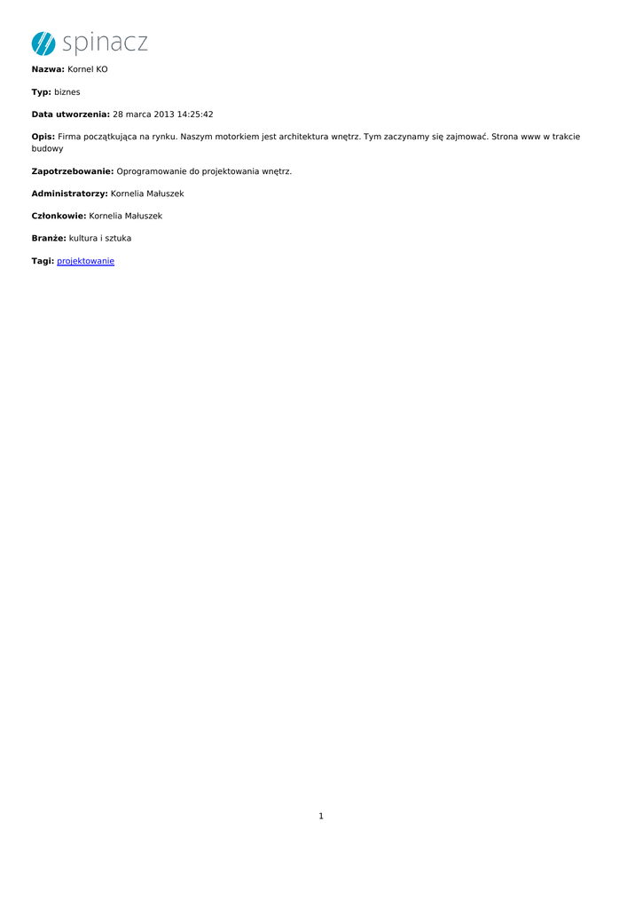1 Nazwa: Kornel KO Typ: biznes Data utworzenia: 28
