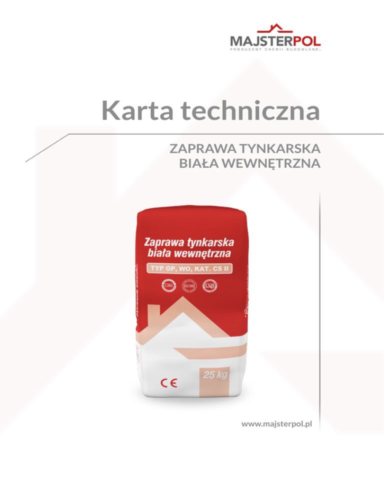 Karta techniczna ZAPRAWA TYNKARSKA BIAŁA WEWNĘTRZNA www.majsterpol.pl ZAPRAWA TYNKARSKA BIAŁA WEW. ZASTOSOWANIE Stanowi bardzo dobry podkład pod okładziny ceramiczne, tynki dekoracyjne, gładzie i farby. Zalecana grubość warstwy tynku: od 6 do 15 mm. Może być stosowany jako tynk tradycyjny dwuwarstwowy nawierzchniowy, stosowany na ZAPRAWĘ TYNKARSKĄ (OBRZUTKĘ CEMENTOWĄ) lub jako tynk podkładowy stosowany pod BIAŁĄ ZAPRAWĘ SZPACHLOWĄ.ZAPRAWA TYNKARSKA BIAŁA WEWNĘTRZNA posiada wysoką wytrzymałość - normowa kategoria CS II (1,5-5,0 N /mm2). RODZAJE PODŁOŻA Mury z cegieł i pustaków ceramicznych, silikatowych, bloczków z betonu komórkowego oraz ściany i stropy z betonowych elementów prefabrykowanych. Stare, nie zwietrzałe tynki cementowo-wapienne, zaprawa tynkarska (obrzutka cementowa). PRZYGOTOWANIE PODŁOŻA Podłoże powinno być mocne i równe, oczyszczone z kurzu, brudu, wapna, olejów, tłuszczów, wosku, resztek farb olejnych i emulsyjnych itp. Zniszczone i słabo przylegające tynki należy usunąć. Podłoże gipsowe należy porysować dłutem w gęstą ukośną siatkę o rysach głębokości około 3mm. Podłoża o zmniejszonej przyczepności zagruntować preparatem gruntującym MAJSTERGRUNT UNIWERSALNY, a podłoża bardzo chłonne MAJSTERGRUNT GŁĘBOKOPENETRUJĄCY. SPOSÓB UŻYCIA Tynk narzucać dostępnymi na rynku agregatami tynkarskimi z pojedynczą komorą mieszania na całe podłoże przewidziane do obrobienia w ciągu jednego cyklu roboczego. Przy narzucie ręcznym zawartość worka wymieszać z podaną na opakowaniu ilością czystej, chłodnej wody do uzyskania jednorodnej mieszaniny i założonej konsystencji. Rozrobioną zaprawę należy odstawić na 5 minut i ponownie wymieszać. Pierwszym etapem tynkowania jest wykonanie „obrzutki wstępnej”. Po jej związaniu (ale jeszcze przed stwardnieniem) należy wykonać „narzut wierzchni”. Tynk w obydwu etapach narzuca się równomiernie kielnią (lub agregatem tynkarskim). Nadmiar zaprawy należy zbierać pacą styropianową lub drewnianą i wrzucać z powrotem do naczynia. Świeży tynk można wyrównywać długą łatą, wykorzystując listwy prowadzące. Moment przystąpienia o zacierania należy określić doświadczalnie tak, aby nie nastąpiło zbytnie przesuszenie powierzchni tynku. Zacieranie wykonuje się z reguły po nałożeniu dodatkowej, Strona 1 z 2 cienkiej warstwy zaprawy, odpowiadającej grubości kruszywa. Prace wykończeniowe należy wykonywać zgodnie z technologią robót tynkarskich, stosując narzędzia odpowiednie do oczekiwanego efektu wykończenia i przeznaczenia tynku. Jeżeli tynk ma stanowić podłoże pod okładziny ceramiczne, nie należy go w ogóle zacierać lub zatrzeć na ostro. Gdy na tynku ma zostać położona gładź gipsowa należy go zatrzeć pacą styropianową lub filcową. SKŁAD Mieszanina cementu portlandzkiego, piasku, wapna oraz odpowiednio dobranych dodatków modyfikujących. OPAKOWANIE Worek papierowy wentylowany wielowarstwowy 25 kg. PRZECHOWYWANIE W oryginalnych, nie uszkodzonych opakowaniach oraz suchych warunkach do 9 miesięcy od daty produkcji podanej na opakowaniu. UWAGI I ZALECENIA Dane techniczne i informacje o sposobie stosowania podane są dla temperatury +23± 2°C i wilgotności względnej 50± 5%. Pod wpływem niekorzystnych warunków temperaturowo- wilgotnościowych podawane czasy obróbki ulegają znacznym zmianom. Świeży tynk chronić przed nadmiernym przesuszeniem i zawilgoceniem. Nie stosować nagrzewnic elektrycznych (ryzyko wystąpienia rys skurczowych) ani gazowych (skurcz i procesy karbonatyzacji).Informacje zawarte na opakowaniu mają na celu zapewnienie optymalnego wykorzystania produktu, jednak nie są podstawą do odpowiedzialności prawnej Producenta, gdyż warunki wykonawstwa pozostają poza jego kontrolą. Wszelka ingerencja w skład produktu jest niedopuszczalna i może w znaczący sposób obniżyć jego jakość. Po wymieszaniu z wodą daje odczyn alkaliczny. Dokładnie opróżnione puste opakowanie papierowe mogą być powtórnie przerobione w procesie recyklingu. DANE TECHNICZNE Kolor: biały Właściwa ilość wody: 4,5 - 5,5 litra na worek 25 kg Temperatura podłoża: +5ºC do 25ºC Temperatura otoczenia: +5ºC do 25ºC Czas przerwy w tłoczeniu świeżego tynku: do 30 minut Przyczepność początkowa: ≥ 0,25 MPa; FP:B MajsterPol Kosińscy Spółka jawna, Mienia 291, 05-319 Cegłów Tel./Kom. (25) 757 05 54, +48 501 550 510, Fax (25) 759 97 09 www.majsterpol.pl, [email protected] ZAPRAWA TYNKARSKA BIAŁA WEW. Strona 2 z 2 Czas zużycia: ok. 1h Kategoria wytrzymałości na ściskanie: CS II Absorpcja wody: W0 Współczynnik przepuszczalności pary wodnej: ≤ 13,1 µ Współczynnik przewodzenia ciepła: P=50% - 0,67 (W/m*K) P=90% - 0,76 (W/m*K) Reakcja na ogień: klasa A1 Zawartość chromu (VI) < 2 ppm ZUŻYCIE ok. 1,4 kg na 1 mm grubości warstwy zaprawy DOKUMENTY FORMALNO PRAWNE EN 998-1:2010 Wymagania dotyczące zapraw do murów – Część 1: Zaprawa tynkarska Deklaracja właściwości użytkowych nr MP/016/2013 Atest higieniczny PZH HK/B/1551/07/2010 Świadectwo z zakresu Higieny Radiacyjnej nr HR/B/31/2013 Wraz z ukazaniem się niniejszej karty technicznej tracą ważność wszystkie poprzednie MajsterPol Kosińscy Spółka jawna, Mienia 291, 05-319 Cegłów Tel./Kom. (25) 757 05 54, +48 501 550 510, Fax (25) 759 97 09 www.majsterpol.pl, [email protected]