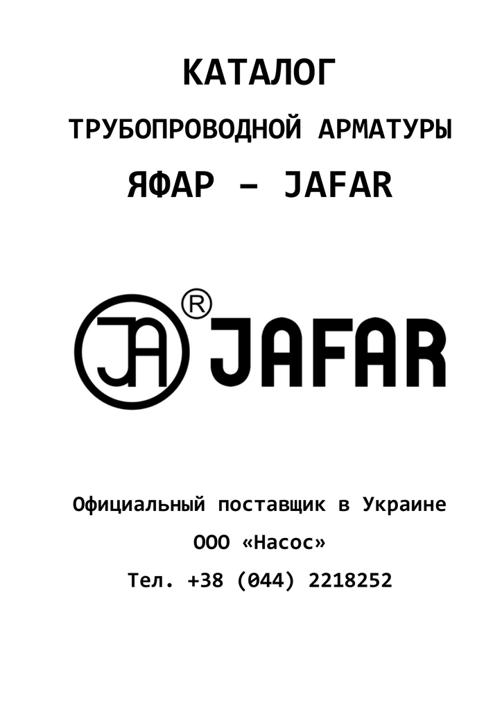 КАТАЛОГ ТРУБОПРОВОДНОЙ АРМАТУРЫ ЯФАР – JAFAR Официальный поставщик в Украине ООО «Насос» Тел. +38 (044) 2218252 ОГЛАВЛЕНИЕ • РАЗДЕЛ 1 «ЗАДВИЖКИ» «ШИБЕРНЫЕ ЗАДВИЖКИ» • РАЗДЕЛ 2 «ПОВОРОТНЫЕ ЗАТВОРЫ» «БАТТЕРФЛЯЙ» • РАЗДЕЛ 3 «ГИДРАНТЫ» «ПОЖАРНЫЕ ГИДРАНТЫ» • РАЗДЕЛ 4 «ОБРАТНЫЕ КЛАПАНЫ» • РАЗДЕЛ 5 «ВАНТУЗЫ» «ВОЗДУШНЫЕ КЛАПАНЫ» «ГРЯЗЕУЛОВИТЕЛИ» «СЕТЧАТЫЕ ФИЛЬТРЫ» • РАЗДЕЛ 6 «ФАСОННЫЕ ЧАСТИ» «МУФТЫ» «ФЛАНЦЫ» «ФИТИНГИ» «ПЕРЕХОДЫ» «СОЕДИНИТЕЛИ» «КОВЕРЫ» «ДЕМОНТАЖНЫЕ ВСТАВКИ» • РАЗДЕЛ 7 «ВРЕЗНЫЕ ХОМУТЫ» «ЗАДВИЖКИ С ХОМУТАМИ» «МОНТАЖНЫЕ КОМПЛЕКТЫ» • РАЗДЕЛ 8 «ВОДОМЕРНЫЕ УЗЛЫ» «КОЛОДЦЫ» «КЛАПАНЫ, ПРЕДОТВРАЩАЮЩИЕ ЗАГРЯЗНЕНИЕ» РАЗДЕЛ 1 ГРУППА 2000 «ЗАДВИЖКИ» «ШИБЕРНЫЕ ЗАДВИЖКИ» R 2002 2111 FABRYKA ARMATUR SA Zasuwa miękkouszczelniona kołnierzowa Soft wedge gate valve flanged Typ 2002 Задвижка с мягким уплотнением фланцевая Typ 2111 Dane techniczne: Technical data: Технические параметры: długość zabudowy wg PN-EN 558-1: 2001 zasuwa typu 2111 - szereg 14 zasuwa typu 2002 - szereg 15 połączenia kołnierzowe wg PN-EN 1092-2: 1999 klasa szczelności - A ciśnienie robocze PN16 temperatura czynnika do 70°C face to face lenght acc. EN 558-1 gate valve type 2111 - row 14 gate valve type 2002 - row 15 flanges acc. EN 1092-2 leakproofness class - A working pressure PN16 medium temperature up to 70°C Строительная длина согл. PN-EN 558-1: 2001 Задвижка тип 2111 - ряд 14 Задвижка тип 2002 - ряд 15 Фланцевые соединения согл. PN-EN 1092-2: 1999 Класс герметичности А Максимальное рабочее давление PN 16 Максимальная температура работы до 70 °C Cechy konstrukcyjne: Design features: Конструктивные особенности: O-Ringowe uszczelnienie trzpienia “SUCHY GWINT” - wymienne pod ciśnieniem. Trzpień nierdzewny łożyskowany z walcowanym gwintem. Klin zawulkanizowany na całej powierzchni z wymienną nakrętką. Przelot prosty - bez gniazda. Wszystkie elementy są zabezpieczone przed korozją. Wykonanie standardowe: PN16, 70oC, EPDM, farba epoksydowa RAL5005 250mm, bez kółka ręcznego (*. Spindle’s gaskets O-ring - “DRY THREAD” replaceable under pressure. Stainless steel spindle with rolled thread and bearing. Total sufrace rubbered wedge with replaceable spindle nut. Gate valve with full bore. All parts are protected against corrosion. Уплотнение шпинделя O-Ring - "СУХАЯ РЕЗЬБА" - заменяется под давлением. Шпиндель нержавеющий, с поверхностью скольжения, с накатанной резьбой. Клин полностью вулканизирован, с заменяемой гайкой. Гладкий проходной канал. Все элементы защищены от коррозии. Standard execution: o PN16, 70 C, EPDM, epoxide paint RAL5005 250mm, without handwheel (*. Certyfikat CE Atest higieniczny PZH Certificate CE Hygienic attest by PZH Стандартное исполнение: PN16, 70°C, EPDM, эпоксидная краска RAL5005 250 мкм, без штурвала (*. Сертификат СЕ. Гигиенический сертификат Польского Учреждения Гигиены (PZH). Zastosowanie: Application: Применение: W instalacjach: wodociągowych, wody pitnej i innych płynach obojętnych chemicznie do odcinania przepływu. In instalations: for water, potable water and other inert fluids to flow closing. Для перекрытия потока в водопроводных сетях, сетях передачи питьевой воды и других химически нейтральных жидкостей. Montaż: Assembly: Установка: Montaż jest możliwy w zakresie: od pozycji poziomej do pozycji pionowej. Assembly from horizontal to vertical position. Установка возможна в любом положении. * - możliwe inne wykonania *- other executions on request * - возможны другие исполнения 2002-2111/EPDM 1/ 2 2012-12 www.jafar.ua 2002 2111 R SA ŁOŻYSKOWANIE DLA DN > 350 ПОДШИПНИКИ ДЛЯ DN > 350 ŁOŻYSKOWANIE DLA DN 40 - 350 ПОДШИПНИКИ ДЛЯ DN 40 - 350 DN 2111 Szer.14 Шир.14 FABRYKA ARMATUR 2002 Szer.15 Шир.15 H d D K l PN16 (PN10) PN16 (PN10) No. C Materiały, Materials, Материал Część, Part, Деталь 1 Korpus Body Корпус Żeliwo szare, żeliwo sferoidalne EN-GJL-250, PN-EN 1561:2012 EN-GJS-400-15, PN-EN 1563:2012 2 Pokrywa Bonnet Крышка Żeliwo szare, żeliwo sferoidalne EN-GJL-250, PN-EN 1561:2012 EN-GJS-400-15, PN-EN 1563:2012 3 Klin Wedge Клин Żeliwo szare, żeliwo sferoidalne EN-GJL-250, PN-EN 1561:2012 EN-GJS-400-15, PN-EN 1563:2012 Guma EPDM PN-ISO 1629: 2005 4 Mosiądz Korek uszczelniający PN-EN 1982:2010 Packing cork Уплотнительная пробка 5 Pierścień zabezpiecz. Stopper ring Предохранительное кольцо Stal 65G PN-74/H-84032 6 Uszczelka czyszcząca Clean gasket Резиновый пыльник Guma EPDM PN-ISO 1629: 2005 7 Nakrętka trzpienia Spindle nut Гайка шпинделя Mosiądz PN-EN 1982:2010 8 Trzpień Spindle Шпиндель Stal X20Cr13 PN-EN 10088-1:2007 9 Uszczelka pokrywy Bon