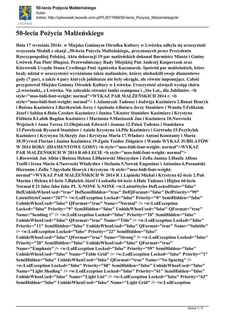 Adres: http://splwowek.lwowek.com.pl/PL/87/1656/50-lecia_Pozycia_Malzenskiego/k/