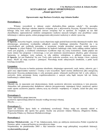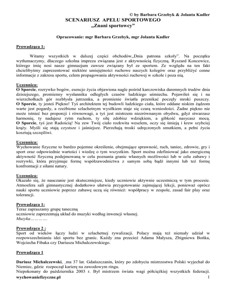 SCENARIUSZ APELU SPORTOWEGO ,,Znani sportowcy”
