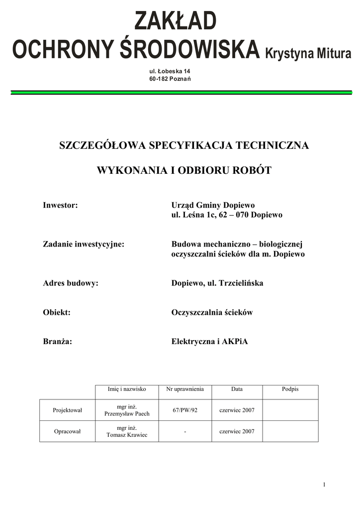 Dopiewo Szczegółowa Specyfikacja Techniczna