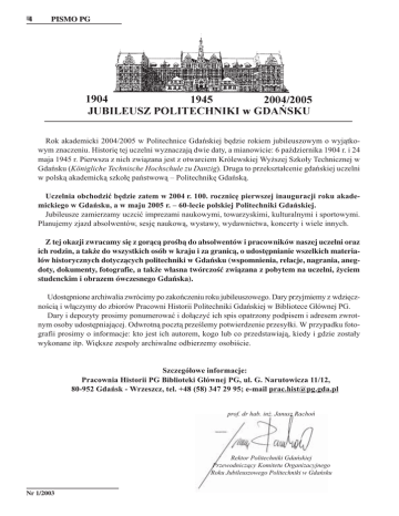4 PISMO PG Rok akademicki 2004/2005 w Politechnice Gdańskiej