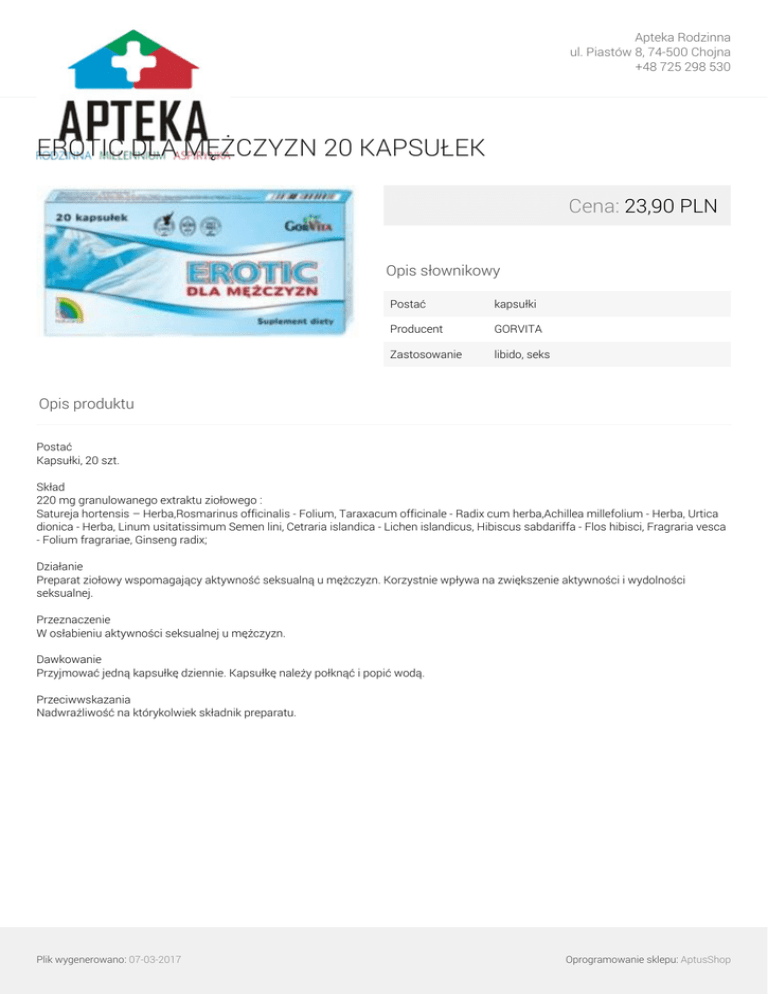 erotic dla mężczyzn 20 kapsułek - Apteka internetowa aptekachojna.pl