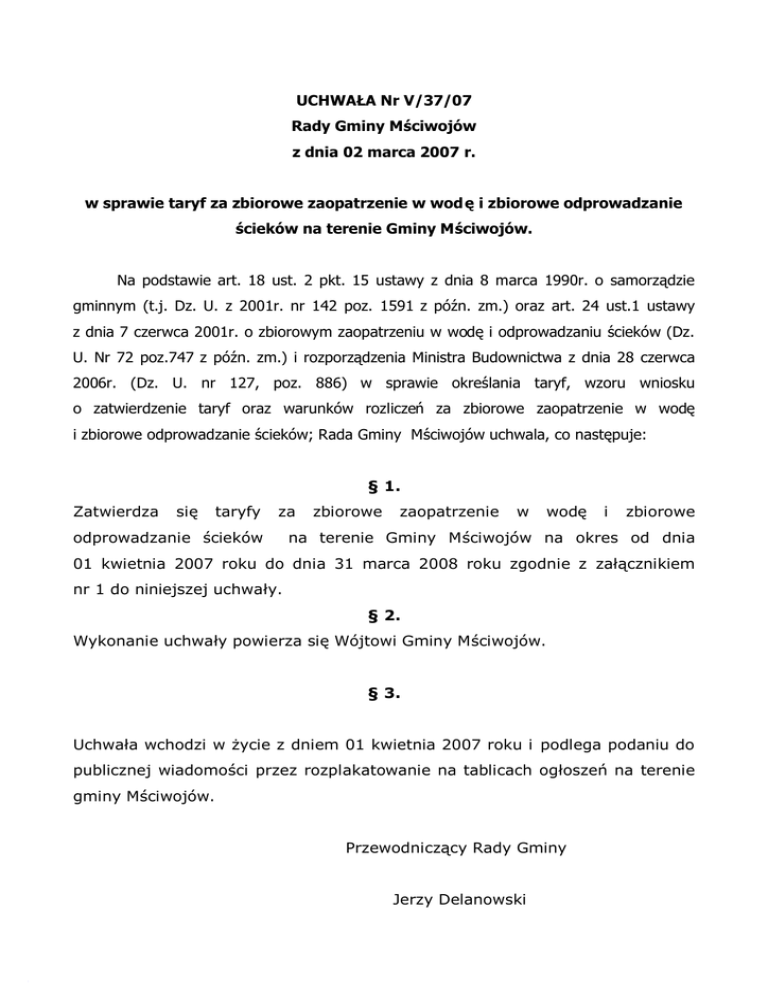 UCHWAŁA Nr V/37/07 Rady Gminy Mściwojów z dnia 02 marca