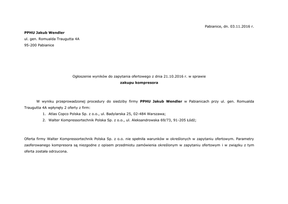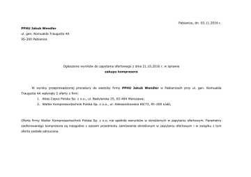 Pabianice, dn. 03.11.2016 r. PPHU Jakub Wendler ul. gen