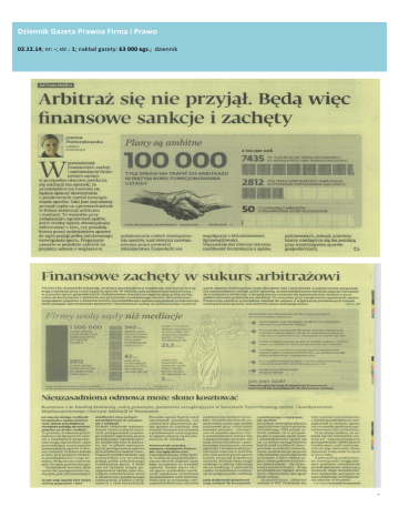 Dziennik Gazeta Prawna Firma i Prawo 02.12.14; nr: -‐; str.: 1; nakład gazety: 63 000 egz.; dziennik 2