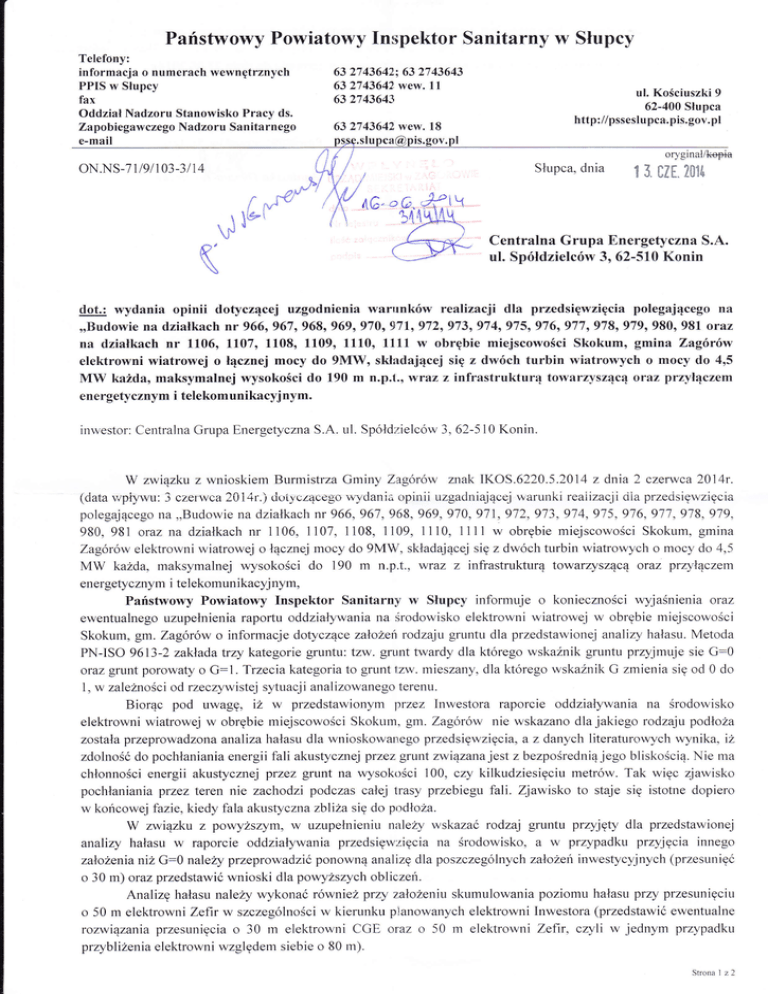 W związku z wnioskiem Burmistrza Gminy Zagorow znak IKOS'6220.5.Ż014 zdnta2 czerwcaŻ014r.