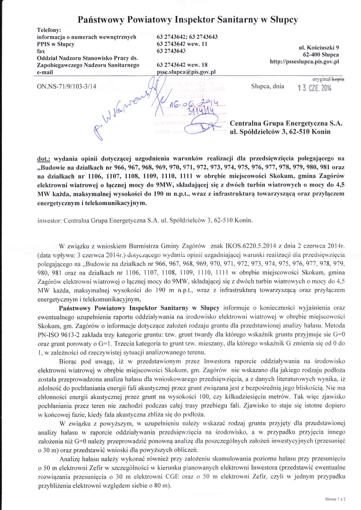 Centralna Grupa Energetyczna S.A' ul' Społdzielców 3, 62_510 k.onin,