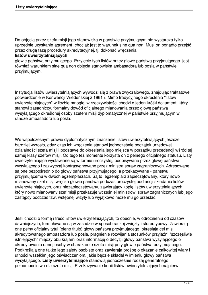 wysyłającego. Listy uwierzytelniające stanowią jednocześnie rodzaj generalnego