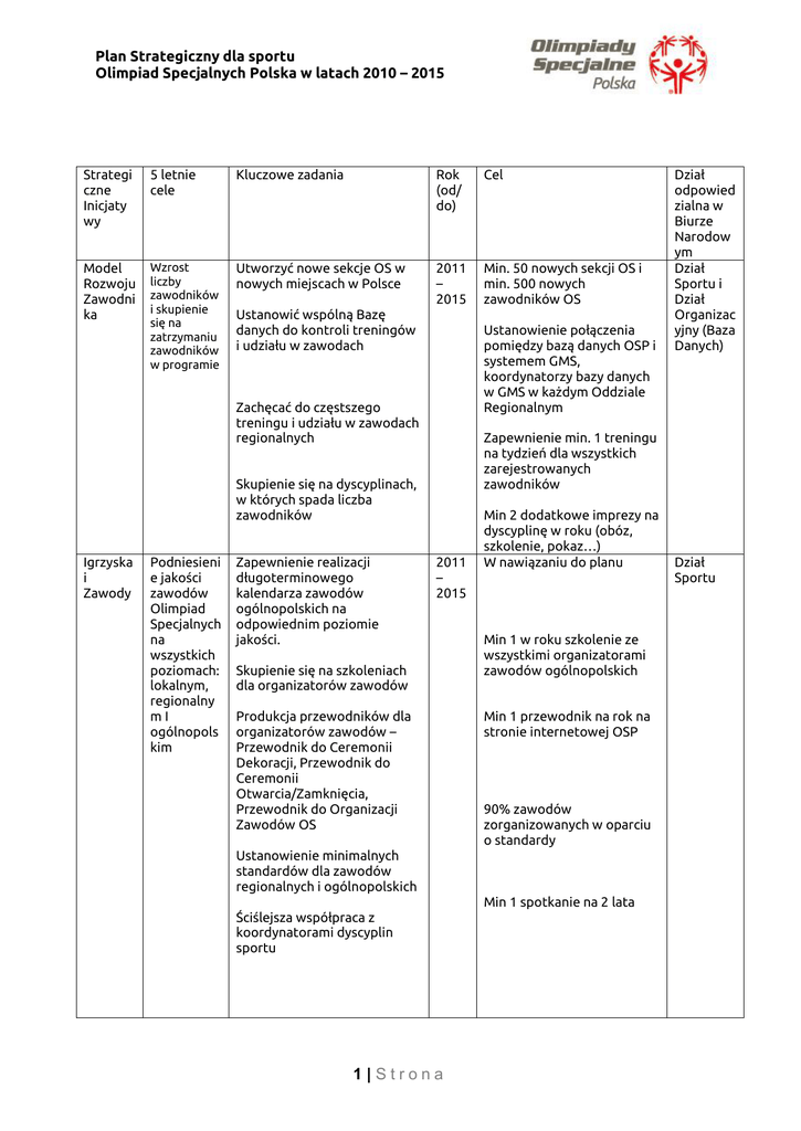 Plan strategiczny - Olimpiady Specjalne Polska
