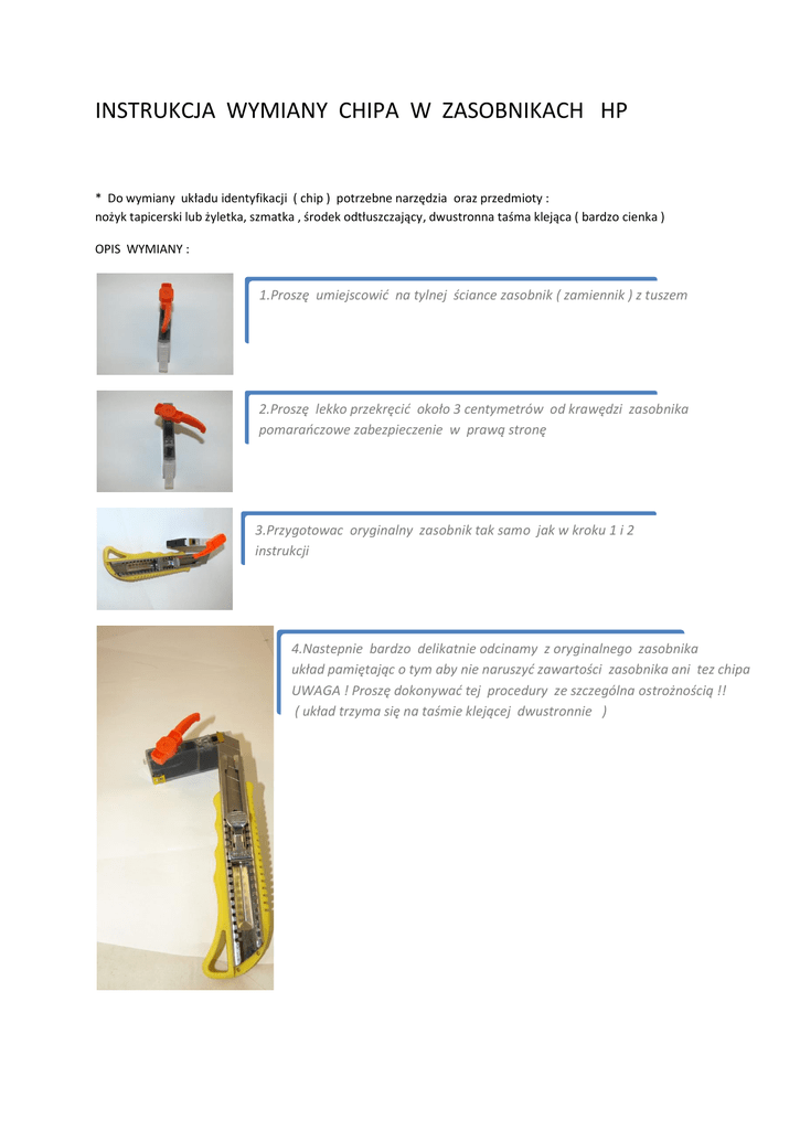 instrukcja wymiany chipa w zasobnikach hp