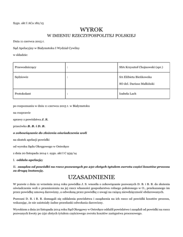 wyrok uzasadnienie - Sąd Apelacyjny w Białymstoku