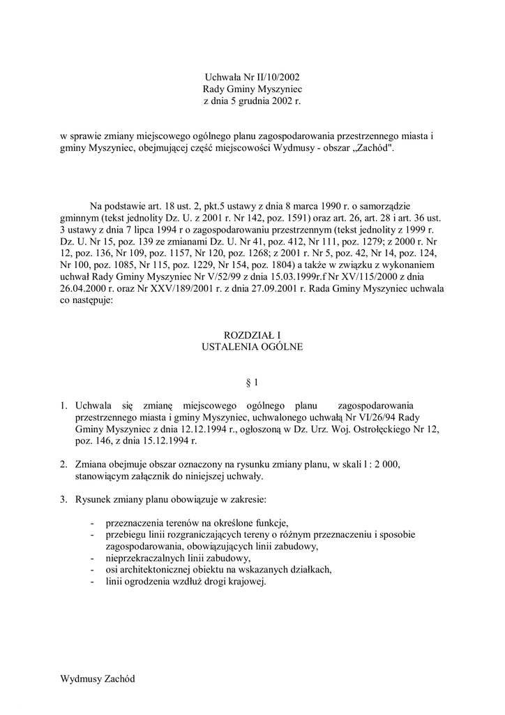 Wydmusy Zachód Uchwała Nr II/10/2002 Rady Gminy Myszyniec z