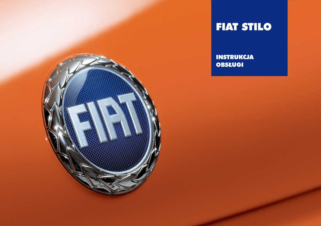Szanowny Kliencie! Dzi´kujemy za preferowanie Fiata i gratulujemy wyboru Fiata Stilo. OpracowaliÊmy tà instrukcj´, aby pomóc poznaç szczegó∏owo jakoÊç tego samochodu. Zalecamy przeczytaç wszystkie jej rozdzia∏y przed przygotowaniem si´ do pierwszej jazdy. Przedstawiono w niej informacje, zalecenia i uwagi wa˝ne dla prawid∏owego u˝ywania samochodu, które pomogà w pe∏ni wykorzystaç mo˝liwoÊci techniczne Waszego Fiata. Przypominamy ponadto o obowiàzku Fiata do „totalnego recyklingu“; gdy Wasz Fiat Stilo b´dzie musia∏a byç z∏omowana, Fiat umo˝liwi poddanie zu˝ytego samochodu prawid∏owej obróbce ekologicznej i recyklingowi jego materia∏ów (zgodnie z obowiàzujàcymi przepisami legislacyjnymi). Dla Êrodowiska naturalnego korzyÊç jest podwójna: nic si´ nie traci i nie Rozprasza, a jednoczeÊnie zmniejsza si´ zu˝ycie surowców. dla bezpieczeƒstwa osób; dla integralnoÊci samochodu; dla ochrony Êrodowiska. W za∏àczonej Ksià˝ce gwarancyjnej podane sà ponadto us∏ugi jakie Fiat oferuje swoim Klientom. Potwierdzenie wykonania przeglàdów okresowych i wymian oleju. Zakres us∏ug dodatkowych zarezerwowanych dla Klientów Fiata. ˚yczymy mi∏ej lektury i szcz´Êliwej podró˝y! W tej Instrukcji obs∏ugi opisane sà wszystkie wersje Fiata Stilo, dlatego nale˝y wziàç pod uwag´ tylko informacje odnoszàce si´ do wyposa˝enia, silnika i wersji przez Paƒstwa nabytej. WARTO WIEDZIEå ! NA STACJI PALIW K Silniki benzynowe: nape∏niaç zbiornik paliwa samochodu wy∏àcznie benzynà bezo∏owiowà o liczbie oktanowej (LO) nie mniejszej od 95 odpowiadajàcej specyfikacji europejskiej EN 228. Silniki Diesel: nape∏niaç zbiornik paliwa samochodu wy∏àcznie olejem nap´dowym autoryzowanym odpowiadajàcym specyfikacji europejskiej EN590. URUCHAMIANIE SILNIKA Silniki benzynowe z mechanicznà skrzynià biegów: sprawdziç, czy dêwignia hamulca r´cznego jest zaciàgni´ta; ustawiç dêwigni´ zmiany biegów w pozycji luz ; wcisnàç do oporu peda∏ sprz´g∏a , bez naciskania peda∏u przyspieszenia, nast´pnie obróciç kluczyk w wy∏àczniku zap∏onu w pozycj´ AVV i zwolniç go natychmiast jak silnik si´ uruchomi. Silniki benzynowe z skrzynià biegów Selespeed: przytrzymaç do oporu wciÊni´ty peda∏ hamulca; obróciç kluczyk w wy∏àczniku zap∏onu w pozycj´ AVV i zwolniç go natychmiast jak silnik si´ uruchomi; w skrzyni dost´pny jest automatyczny luz. Silniki diesel: obróciç kluczyk w wy∏àczniku zap∏onu w pozycj´ MAR i zaczekaç na zgaÊni´cie lampek sygnalizacyjnych Y i m; obróciç kluczyk w pozycj´ AVV i zwolniç go natychmiast jak silnik si´ uruchomi. PARKOWANIE NA ¸ATWO PALNYCH MATERIA¸ACH Podczas funkcjonowania katalizator osiàga bardzo wysokà temperatur´. Dlatego nie parkowaç samochodu na trawie, suchych liÊciach, ig∏ach sosny lub na innych materia∏ach ∏atwopalnych: niebezpieczeƒstwo po˝aru. OCHRONA ÂRODOWISKA Samochód wyposa˝ony jest w system, który przeprowadza ciàg∏à diagnostyk´ komponentów odpowiedzialnych za emisj´ zanieczyszczeƒ, aby zagwarantowaç najlepszà ochron´ Êrodowisku. URZÑDZENIA ELEKTRYCZNE AKCESORIA Je˝eli po zakupie samochodu chcemy zainstalowaç akcesoria które wymagajà zasilania elektrycznego, (z ryzykiem stopniowego roz∏adowania akumulatora), zwróciç si´ do ASO Fiata, która okreÊli kompletny pobór pràdu i zweryfikuje instalacj´ w samochodzie, czy wytrzyma wymagane obcià˝enie elektryczne. KARTA KODOWA „CODE card“ Przechowywaç jà w bezpiecznym miejscu, nie w samochodzie. OBS¸UGA OKRESOWA W∏aÊciwa obs∏uga umo˝liwia utrzymanie niezmiennych w czasie osiàgów samochodu i charakterystyk bezpieczeƒstwa, ochrony Êrodowiska i niskich kosztów eksploatacji. W INSTRUKCJI OBS¸UGI SAMOCHODU... ...podane sà informacje, zalecenia i ostrze˝enia wa˝ne dla prawid∏owej eksploatacji, bezpieczeƒstwa jazdy i dla utrzymania w dobrym stanie Waszego samochodu. Prosimy zwróciç szczególnà uwag´ na symbole " (bezpieczeƒstwo osób), # (ochrona Êrodowiska), ! (integralnoÊç samochodu). DESKA LAMPKI ROZDZIELCZA SYGNALIZACYJNE URUCHAMIANIE W RAZIE AWARII I KOMUNIKATY SILNIKA I JAZDA BEZPIECZE¡STWO I STEROWANIE OBS¸UGA SAMOCHODU DANE TECHNICZNE SPIS ALFABETYCZNY 4 D E S K A R O Z D Z I E L C Z A I S T E R O WA N I E DESKA ROZDZIELCZA........................................................5 CRUISE CONTROL ..........................................................64 ZESTAW WSKAèNIKÓW....................................................6 LAMPY SUFITOWE ..........................................................67 SYMBOLIKA......................................................................8 WY¸ÑCZNIKI ..................................................................68 SYSTEM FIAT CODE ..........................................................8 WYPOSA˚ENIE WEWN¢TRZNE........................................70 KLUCZYKI........................................................................10 DACH OTWIERANY „SKYWINDOW“ ................................74 ALARM ..........................................................................17 DRZWI............................................................................79 WY¸ÑCZNIK ZAP¸ONU ....................................................20 ELEKTRYCZNE PODNOÂNIKI SZYB ..................................80 WSKAèNIKI ....................................................................21 BAGA˚NIK ......................................................................81 WYÂWIETLACZ WIELOFUNKCYJNY ..................................23 POKRYWA KOMORY SILNIKA ..........................................92 TRIP COMPUTER ............................................................34 BAGA˚NIK / BAGA˚NIK NA NARTY ................................93 SIEDZENIA......................................................................37 REFLEKTORY ......................................................