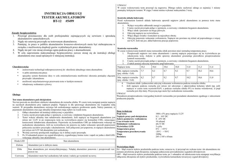 INSTRUKCJA OBSŁUGI TESTER AKUMULATORÓW BT