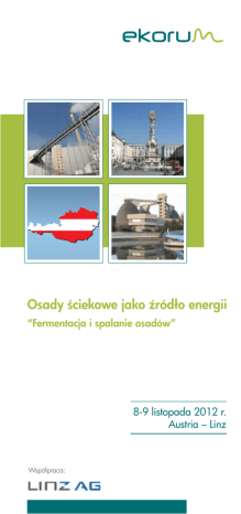 Osady ściekowe jako źródło energii “Fermentacja i spalanie osadów” 8-9 listopada 2012 r. Austria – Linz Współpraca: Osady ściekowe są produktem ubocznym oczyszczania ścieków. Stanowią 2-3% ogólnej objętości ścieków dopływających do oczyszczalni. Wykorzystanie osadów ściekowych, jako źródła energii zmniejsza ilość składowanych osadów, a co za tym idzie redukuje ich uciążliwość dla środowiska. Jakie modele i rozwiązania stoją przed polską gospodarką wodno-ściekową w zakresie przetwarzania osadów ściekowych? Polska dostosowując się do wymogów Dyrektywy zatwierdziła strategię rozwoju sektora energetycznego. Na jej mocy Polska powinna do 2020 roku osiągnąć produkcję energii ze źródeł odnawialnych na poziomie 15%. W związku z czym coraz większe znaczenie będzie miała także energia pozyskiwana z biogazu, powstającego w czasie stabilizacji beztlenowej osadów ściekowych na oczyszczalniach ścieków, który ze względu na dobre właściwości energetyczne stanowi istotną konkurencję dla gazu ziemnego. W miejscowości Asten koło Linz zainstalowano największą biogazownię w Austrii i jedną z najnowocześniejszych w Europie. Biogazownia przetwarza osady ściekowe z pobliskiej oczyszczalni ścieków, produkując tym samym 4,4 mln m3 gazu rocznie, z czego 25 GWh biometanu. Gaz wytworzony w procesie fermentacji osadów ściekowych zasila tabor miejski miasta Linz oraz okoliczne gospodarstwa domowe w odnawialne źródło energii. Tak przetworzony osad trafia następnie do zakładu termicznego przetwarzania odpadów komunalnych i osadów ściekowych. Jest to obecnie najnowsza tego typu inwestycja w Austrii, zakład został wybudowany w roku 2011 i przetwarza 150 tysięcy to odpadów komunalnych i 50 000 tysięcy ton odwodnionych osadów ściekowych rocznie. Instalacja posiada zawansowaną technologią oczyszczania spalin, dostarczając energię do 37 000 i ciepło do 17 000 gospodarstw domowych. Czy prezentowany podczas wyjazdu przykład miasta Linz jest dla nas niedaleką przyszłością czy odległym wyzwaniem? W Polsce konieczne jest przeanalizowanie i wskazanie optymalnych rozwiązań problemu zagospodarowania osadów. Wzory austriackie są godne naśladowania. Jeśli planują Państwo rozbudowę lub modernizacje zakładu zapraszamy po gotowe odpowiedzi, dotyczące budowy i eksploatacji instalacji fermentacji i współspalania osadów ściekowych, które uzyskają Państwo podczas Wyjazdu Technicznego do Linz. Zapraszamy do zapoznania się z programem! 8 listopada 2012 (czwartek) 7:00 Spotkanie grupy i wyjazd z Gliwic 15:00 Zakwaterowanie w hotelu w Linz, obiad 16:00 Zwiedzanie miasta Linz z przewodnikiem 19:30 Kolacja 22:00 Nocleg 9 listopada (piątek) 7:00 Śniadanie w hotelu 7:40 Wyjazd z hotelu 8:00 Wizytacja spalarni odpadów i osadów w Linz Zakład został oddany do użytku w 2011 roku. Rocznie przetwarza 150 000 ton wstępnie przetworzonych odpadów komunalnych i 50 000 ton osadów ściekowych, produkując energię dla 37 000 i ciepło dla 17 000 gospodarstw domowych. Koszt inwestycji wyniósł 145 mln euro. Instalacja została wybudowana w miejscu starej instalacji ciepłowniczej. Spalanie odbywa się w piecu fluidalnym. Zakład został tak zaprojektowany, aby dostawa wsadu mogła się obywać transportem ciężarowym, kolejowym i morskim. 10:00 Wizytacja regionalnej oczyszczalni ścieków miasta Linz w Asten z modułem fermentacji osadów ściekowych Oczyszczalnia działa w technologii mechanicznobiologicznego oczyszczania ścieków komunalnych. Posiada pojemność 950 000 RLM. Biogazownia osadów została uruchomiona w roku 2009. Osady są przetwarzane w trzech komorach fermentacyjnych o pojemności 10 400 m3 każda, produkując tym samym 4,4 mln m3 gazu rocznie, z czego 25 GWh biometanu. Gaz wytworzony w procesie fermentacji zasila tabor miejski miasta Linz oraz okoliczne gospodarstwa domowe w odnawialne źródło energii. Przefermentowany osad trafia do spalarni w Linz. Koszt inwestycji budowy modułu fermentacji wyniósł 2,3 mln euro. 12:00 15:30 Wyjazd do Polski 20:30 Powrót do Polski do Gliwic Szukają Państwo sposobu na poszerzenie kontaktów biznesowych, wzmocnienie wizerunku w branży i zaprezentowanie nowego produktu? Zapraszamy do zaprezentowania swojej oferty na wyjeździe technicznym organizowanym przez EKORUM. W swojej ofercie proponujemy pakiety: - zamieszczenie reklamy w materiałach szkoleniowych - kolportaż folderów i gadżetów firmowych - partner warsztatów - wystawca - wystąpienie podczas obrad W sprawie szczegółów skontaktuj się z biurem na adres e-mail [email protected] lub pod nr telefonu +48 61 67 00 965 Projekt i opracowanie graficzne: Agnieszka Matczak tel. +48 509 560 655 ww w.dolga.pl Obiad na trasie INFORMACJE ORGANIZACYJNE 1. Termin wyjazdu 8-9 listopada 2012 r. 2. Opłata za udział w wyjeździe wynosi 1490 zł netto i obejmuje: - przejazd na trasie Gliwice – Linz – Gliwice, - 1 nocleg ze śniadaniem w pokoju 2-osobowym z łazienką (w hotelu 3-gwiazdkowym w Austrii), - wyżywienie w dniach 8-9.11 określone w programie wyjazdu, - usługi tłumaczenia podczas wizytacji w poszczególnych zakładach, - komplet materiałów szkoleniowych, - atrakcje turystyczne, - opiekę pilota, - ubezpieczenie KL i NNW. 3. Dokument niezbędny do wyjazdu: ważny dowód osobisty lub paszport. 4. Przy zgłoszeniu więcej niż 1 osoby udzielany jest 5% rabat dla każdej kolejnej osoby. 5. Istnieje możliwość rezerwacji poprzez Ekorum miejsca noclegowego w hotelu w Gliwicach w dniu poprzedzającym wyjazd 7.11.2012 r. i w dniu powrotu 9.11.2012 r. W tym celu prosimy o kontakt z Ekorum. 6. Kartę zgłoszenia oraz potwierdzenie przelewu prosimy przesłać faksem: pod numer + 48 61 66 89 166 lub zeskanować i wysłać na adres e-mail [email protected] w terminie do 19 października 2012 r. - koszt pokoju 1-osobowego – 1690 zł netto, - koszt miejsca w pokoju 2-osobowym – 1490 zł netto. Opłat