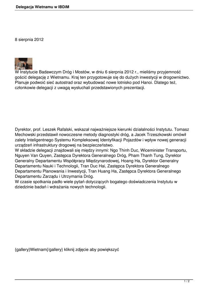 gościć delegację z Wietnamu. Kraj ten przygotowuje się do dużych inwestycji w drogownictwo.