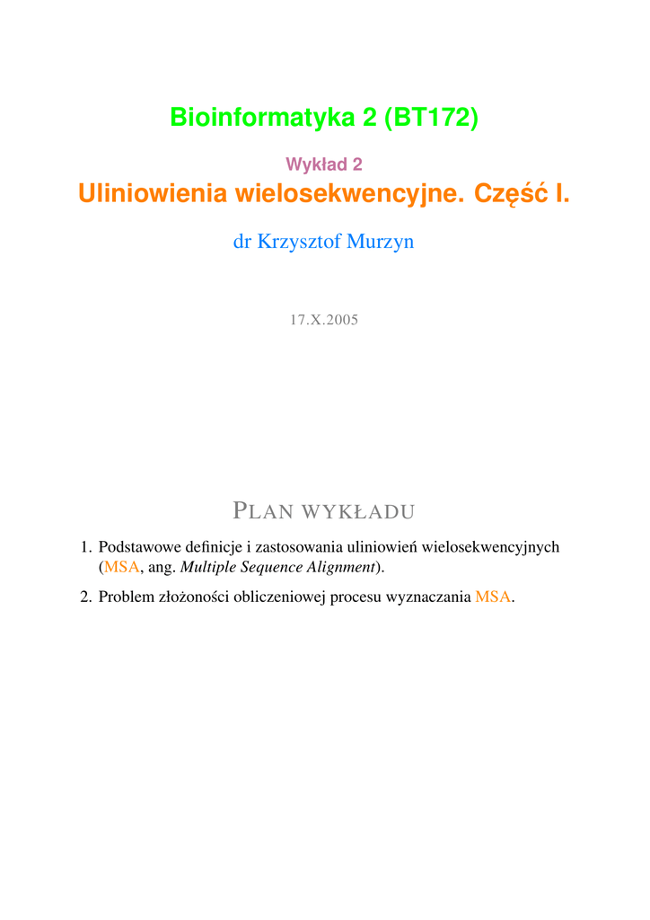 Bioinformatyka 2 (BT172) Uliniowienia wielosekwencyjne. Cz˛e´s´c I.