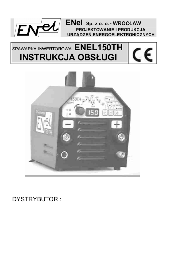 ENel Sp. z o. o. - WROCŁAW PROJEKTOWANIE I PRODUKCJA URZĄDZEŃ ENERGOELEKTRONICZNYCH ENEL150TH INSTRUKCJA OBSŁUGI SPAWARKA INWERTOROWA DYSTRYBUTOR : 1. WSTĘP Niniejsza instrukcja zawiera informacje, które pozwolą w pełni wykorzystać walory eksploatacyjne spawarki ENEL150TH oraz umożliwią bezpieczne jej użytkowanie. Wszystkich użytkowników zachęcamy do zapoznania się z poniższą instrukcją. 2. PRZEZNACZENIE Spawarka ENEL150TH jest nowoczesnym źródłem prądu stałego, przeznaczonym głównie do spawania metodą TIG oraz elektrodami otulonymi (metoda MMA) wszystkich typów (ER-, EA-, EB-, ES-, ...) o średnicach od 1,6 do 4,0. Z uwagi na wysokie napięcie biegu jałowego (90V) oraz bardzo dobre własności spawalnicze, urządzenie umożliwia również spawanie elektrodami w otulinie celulozowej, wykorzystywanymi do spawania między innymi rurociągów. Po wyposażeniu spawarki w odpowiedni uchwyt możliwe jest spawanie metodą TIG (spawanie elektrodą nietopliwą - najczęściej wolframową w osłonie gazu obojętnego np. argonu) stali i jej stopów oraz miedzi i jej stopów. Zajarzenie łuku odbywa się metodą bezstykową (zajarzenie iskrowe) lub dotykową. Możliwa jest zdalna regulacja prądu spawania we wszystkich trybach pracy. Mikroprocesorowy sterownik spawarki zapewnia precyzję i powtarzalność nastaw wielu parametrów oraz prostą obsługę. Z uwagi na małe gabaryty i masę oraz odporność na duże wahania napięcia sieci - spawarka ENEL150TH jest szczególnie przydatna do pracy w trudnych warunkach terenowych przy montażu wszelkiego rodzaju konstrukcji spawanych, rurociągów, zbiorników itp.. Urządzenie jest przystosowane do pracy w temperaturze otoczenia od 10OC do +40OC i wilgotności względnej do 90% przy temperaturze +20OC. 3. OPIS Spawarka ENEL150TH jest inwertorowym źródłem prądu stałego pracującym w zakresie częstotliwości powyżej częstotliwości akustycznej. Jest źródłem o dobrej dynamice, wygładzonym i stabilnym łuku, lekkim, o niewielkich gabarytach, odpornym na duże wahania napięcia sieci zasilającej. Elementy połączeniowe, regulacyjne i sygnalizacyjne rozmieszczone są na płycie czołowej. Na płycie tylnej znajdują się : wyłącznik zasilania, przewód zasilający, wentylator, tabliczka znamionowa oraz króciec zaworu gazu, służący do doprowadzenia gazu osłonowego z butli. Elementy regulacyjne i sygnalizacyjne spawarki przedstawia rys. 1. 2 Rysunek 1 Spawarkę wyposażono w cyfrowy wyświetlacz (1), wskazujący wartości nastawianych parametrów, zadajnik wartości parametrów (2), przełącznik rodzaju pracy (3), przełącznik parametrów (4), przełącznik wyboru sposobu zajarzania (7) oraz lampkę (8) sygnalizującą wybrany sposób zajarzania, cztery czerwone lampki sygnalizacyjne wskazujące aktualnie wybrany rodzaj pracy, dziesięć czerwonych lampek sygnalizacyjnych wskazujących aktualnie nastawiany parametr, zieloną lampkę sygnalizującą włączenie zasilania (5) oraz żółtą lampkę wskazującą przegrzanie urządzenia (6). Do dyspozycji są cztery rodzaje pracy wybierane przyciskiem (3) (rys. 1): 1) spawanie elektrodami otulonymi (MMA)- czerwona lampka powinna wskazywać Prąd spawania nastawiany jest w zakresie od 5 do 150A z rozdzielczością co 1A. Prostownik posiada funkcję ANTYSTYK ułatwiającą odklejenie elektrody w przypadku jej przywarcia do spawanych elementów (jeżeli przywarcie elektrody do spawanych elementów trwa dłużej niż 1,5 sekundy 3 następuje automatyczne wyłączenie prądu spawania, dzięki czemu oderwanie elektrody nie nastręcza trudności). Możliwe są dwa rodzaje pracy : a) z automatycznym ograniczaniem napięcia biegu jałowego do wartości bezpiecznej ok. 12V. Ten rodzaj pracy jest automatycznie ustawiany po włączeniu zasilania oraz po zmianie z innego trybu pracy na tryb MMA i sygnalizowany jest ciągłym świeceniem diody wskazującej prąd spawania Is. b) bez automatycznego ograniczania napięcia biegu jałowego. Napięcie biegu jałowego utrzymywane jest na poziomie ok. 90V. Do tego rodzaju pracy przechodzimy naciskając przycisk zmiany parametru (4). Ten rodzaj pracy sygnalizowany jest mruganiem diody wskazującej prąd spawania Is. Ponowne naciśnięcie przycisku (4) powoduje powrót do pracy z automatycznym ograniczaniem napięcia. Po zaopatrzeniu spawarki w przystawkę zdalnego sterowania możliwa jest zdalna zmiana prądu spawania podczas wykonywania spoiny. 2) spawanie metodą TIG 2T (dwutakt)- czerwona lampka powinna wskazywać Do dyspozycji są następujące parametry nastawiane w podanych zakresach : Is[A] - prąd spawania w amperach nastawiany w zakresie 5 - 150A z rozdzielczością co 1A Tn[s] - czas narastania prądu spawania w sekundach nastawiany w zakresie 0,1-5s z rozdzielczością co 0,1s To[s] - czas opadania prądu spawania w sekundach nastawiany w zakresie 0,1-20s z rozdzielczością co 0,1s Ib[%] - prąd bazowy nastawiany w procentach prądu spawania Is w zakresie 10 - 100% z rozdzielczością co 1%. Jeżeli wartość prądu bazowego ustawimy na 100% prąd spawania będzie miał wartość stałą równą nastawionej wartości Is. Jeżeli wartość prądu bazowego ustawimy różną od 100% to uzyskamy prąd pulsujący o następujących parametrach : prąd spawania będzie miał naprzemiennie jedną z dwóch wartości - prądu bazowego Ib w czasie TL (patrz niżej) i prądu spawania Is w czasie TH (patrz niżej) TH[s] - czas trwania impulsów prądu o wartości Is w sekundach nastawiany w zakresie 0,01 - 1s z rozdzielczością co 0,01s. Parametr TH nastawiany jest tylko wówczas gdy wartość prądu bazowego Ib nastawiono różną od 100% 4 TL[s] - czas trwania impulsów prądu o wartości Ib w sekundach nastawiany w zakresie 0,01 - 1s z rozdzielczością co 0,01s. Parametr TL nastawiany jest tylko wówczas gdy wartość prądu bazowego Ib nastawiono różną od 100% Tg[s] - czas wypływu gazu po zgaśnięciu łuku w sekundach nastawian