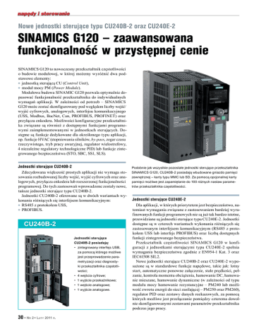 Nowe jednostki sterujące typu CU240B-2 oraz CU240E-2 SINAMICS G120 – zaawansowana funkcjonalność w przystępnej cenie SINAMICS G120 to nowoczesny przekształtnik częstotliwości o budowie modułowej, w której możemy wyróżnić dwa podstawowe elementy: jednostką sterującą CU (Control Unit), yy moduł mocy PM (Power Module). yy Modułowa budowa SINAMIC G120 pozwala optymalnie dopasować funkcjonalność przekształtnika do indywidualnych wymagań aplikacji. W zależności od potrzeb – SINAMICS G120 może zostać skonfigurowany pod względem liczby wejść/ wyjść cyfrowych, analogowych, interfejsu komunikacyjnego (USS, Modbus, BacNet, Can, PROFIBUS, PROFINET) oraz przyłącza enkodera. Możliwości konfiguracyjne przekształtnika związane są również z dostępnymi funkcjami programowymi zaimplementowanymi w jednostkach sterujących. Dostępne są funkcje dedykowane dla określonego typu aplikacji, np. funkcje HVAC (stopniowania silników, by-pass, zegar czasu rzeczywistego, tryb pracy awaryjnej, regulator wielostrefowy, 4 niezależne regulatory technologiczne PID) lub funkcje zintegrowanego bezpieczeństwa (STO, SBC, SS1, SLS). Jednostki sterujące CU240B-2 Zdecydowana większość prostych aplikacji nie wymaga stosowania rozbudowanej liczby wejść, wyjść cyfrowych oraz analogowych, przyłącza enkodera lub rozszerzonej funkcjonalności programowej. Do tych zastosowań wprowadzone zostały nowe, tańsze jednostki sterujące typu CU240B-2. Jednostki CU240B-2 oferowane są w dwóch wariantach wykonania różniących się interfejsem komunikacyjnym: RS485 z protokołem USS, yy PROFIBUS. yy CU240B-2 Jednostki sterujące CU240B-2 posiadają: • zintegrowany interfejs USB, za pomocą którego możliwe jest przeprowadzenie parametryzacji oraz diagnostyki przekształtnika częstotliwości; • 4 wejścia cyfrowe; • 1 wyjście przekaźnikowe; • 1 wejście analogowe; • 1 wyjście analogowe. 30 l Nr 2 l Luty 2011 r. Podobnie jak wszystkie pozostałe jednostki sterujące przekształtnika SINAMICS G120, CU240B-2 posiadają wbudowane gniazdo pamięci zewnętrznej – karty typu MMC lub SD. Za pomocą opcjonalnej karty pamięci możliwe jest zapamiętanie do 100 różnych nastaw parametrów przekształtnika częstotliwości. Jednostki sterujące CU240E-2 Dla aplikacji, w których priorytetem jest bezpieczeństwo, natomiast wymagania związane z zastosowaniem bardziej wyrafinowanych funkcji programowych nie są już tak bardzo istotne, przewidziane są jednostki sterujące typu CU240E-2. Jednostki dostępne są w czterech wariantach wykonania różniących się zastosowanym interfejsem komunikacyjnym (RS485 z protokołem USS lub interfejs PROFIBUS) oraz liczbą dostępnych funkcji zintegrowanego bezpieczeństwa. Przekształtnik częstotliwości SINAMICS G120 w konfiguracji z jednostkami sterującymi typu CU240E-2 spełnia wymagania bezpieczeństwa zgodnie z EN954-1 Kat. 3 oraz IEC61508 SIL2. Nowe jednostki sterujące CU240B-2 oraz CU240E-2 wyposażone są w standardowe funkcje napędowe, takie jak: lotny start, automatyczne ponowne załączenie, stałe prędkości, pełzanie, kontrola momentu obciążenia, hamowanie DC, hamowanie mieszane, hamowanie dynamiczne (w zależności od typu modułu mocy hamowanie rezystancyjne – PM240 lub możliwość zwrotu energii do sieci zasilającej – PM250 oraz PM260), regulator PID oraz zestawy danych rozkazowych, za pomocą których możliwe jest przełączanie pomiędzy czterema dowolnie skonfigurowanymi zestawami parametrów przekształtnika podczas jego pracy. padku tak zwanej bezpiecznej wersji jednostki CU240E-2 dostępne są funkcje: • SS1 zatrzymanie bezpieczne kategorii 1; • SLS bezpiecznie ograniczona prędkość; • SBC bezpieczne sterowanie hamulcem. Wszystkie jednostki sterujące typu CU240E-2 posiadają zintegrowaną funkcję bezpieczeństwa typu STO (bezpieczne odłączenie momentu). W przy- reklama CU240E-2 W standardzie jednostki CU240E-2 posiadają: • 6 wejść cyfrowych; • 3 wyjścia przekaźnikowe; • 2 wejścia analogowe; • 2 wyjścia analogowe; • Interfejs USB. Gniazdo pamięci zewnętrznej – obsługa opcjonalnych kart MMC lub SD. Ważnym aspektem dla każdego przekształtnika częstotliwości są również funkcje ochronne toru wyjściowego: ochrona termiczna przekształtnika oraz silnika (możliwość współpracy z czujnikami typu PTC oraz KTY84), zabezpieczenie przed zanikiem jednej z faz, zwarciem, doziemieniem, przeciążeniem, zbyt niskim oraz zbyt wysokim napięciem w obwodzie DC. Wysoką dokładność sterowania prędkością wyjściową silnika zapewnia udoskonalony algorytm sterowania wektorowego bezczujnikowego. Do dyspozycji dostępne są również metody sterowania skalarnego U/f: z charakterystyką liniową, kwadratową lub parametryzowaną. Dla aplikacji, w których konieczne jest zapewnienie możliwości regulacji momentu na wale silnika, przewidziano tryb bezczujnikowego sterowania momentem. Nowe jednostki sterujące oferują jednocześnie większą funkcjonalność w obszarze zintegrowanych wolnych bloków funkcyjnych, za pomocą których możliwe jest przeprowadzanie prostych operacji arytmetyczno-logicznych w przekształtniku częstotliwości. Do dyspozycji użytkownika przewidziano bramki logiczne typu AND, OR, XOR, NOT, cyfrowe przekaźniki czasowe, elementy filtrujące, operatory SUM, SUB, MUL, DIV oraz limitery cyfrowe i komparatory. Zaimplementowanie wewnętrznej logiki w oprogramowaniu przekształtnika skutecznie zwiększa jego możliwości związane z przetwarzaniem sygnałów cyfrowych oraz analogowych. n SIEMENS Sp. z o.o. ul. Żupnicza 11 03-821 Warszawa e-mail: [email protected] www.siemens.pl/napedy Nr 2 l Luty 2011 r. l 31