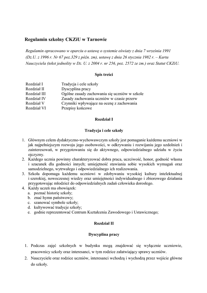 Regulamin szkolny CKZiU w Tarnowie