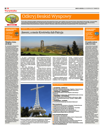 10 A SOBOTA–NIEDZIELA, 18–19 SIERPNIA 2012 Turystyka Kultura Odkryj Beskid Wyspowy Urocze góry, malownicze widoki, nieskażona przyroda, interesująca flora i fauna, sporo szlaków, trasy rowerowe i konne, łatwy dojazd i tanie noclegi – tym wszystkim może pochwalić się Beskid Wyspowy. Na odkrywanie jego tajemnic zapraszają: Dobra, Jodłownik, Kamienica, Limanowa (miasto i gmina), Lubień, Mszana Dolna, Niedźwiedź, Rabka-Zdrój, Raciechowice, Słopnice, Tymbark i Wiśniowa, a także Centralny Ośrodek Turystyki Górskiej PTTK i „Dziennik Polski”! URZĄD MIASTA LIMANOWA UL. JANA PAWŁA II 9 34-600 LIMANOWA 19 SIERPNIA – JAWORZ (918 M N.P.M.) URZĄD GMINY LIMANOWA Jaworz, a może Kretówka lub Patryja UL. MATKI BOSKIEJ BOLESNEJ 18B 34-600 LIMANOWA WÓJT WŁADYSŁAW PAZDAN TEL. 18-33-72-252 [email protected] WWW.UG.LIMANOWA.PL BURMISTRZ WŁADYSŁAW BIEDA TEL. 18-33-72-054 [email protected] WWW.MIASTO.LIMANOWA.PL 23 malownicze mikroświaty 38 – tyle hektarów Miejskiej Góry może wkrótce zamienić się w niezwykłą strefę wypoczynku i sportów ekstremalnych, jedną z najciekawszych w Małopolsce. – Staramy się o 2,3 mln zł dofinansowania ze środków unijnych – przyznaje Władysław Bieda, burmistrz Limanowej. Jeśli śmiała wizja zostanie zrealizowana, to Miejska Góra zostanie podzielona na trzy strefy. Pierwsza, najniżej położona, zostanie zamieniona w królestwo najmłodszych dzieci i ich rodziców (piaskownice, huśtawki, karuzele, stylowe ławeczki). Dla tych wszystkich, którzy lubią przypływ adrenaliny i szybsze bicie serca, zbudowany zostanie m.in. park linowy o wielu stopniach trudności, a także tor do ekstremalnej jazdy na rowerze. To jednak nie wszystko. – Chcemy także wybudować kolejką. W górę i w dół – na specjalnych szynach – kursowałyby czteroosobowe wagoniki. Jedna ze stacji powstałaby w pobliżu szczytu Miejskiej Góry, a druga nieopodal stacji narciarskiej. Z kompleksu tego można byłoby korzystać nie tylko latem, ale także zimą – informuje Burmistrz Bieda. Centrum strefy refleksji, którą zaplanowano na szczycie Miejskiej Góry, stanowiłby krzyż z platformą widokową. – Stawiamy na turystykę i rekreację – podkreśla gospodarz miasta. Co zatem, oprócz wyprawy na Miejską Górę, można jeszcze zobaczyć w Limanowej? Górującą nad miastem Bazylikę Matki Bożej Bolesnej, wzniesioną jako pomnik 100-lecia Konstytucji 3-Maja, z gotycką Pietą w środku (ukoronowaną przez Jana Pawła II), piękny i zadbany rynek, XVIIIwieczny Dwór Marsów (nocował w nim prezydent Ignacy Mościcki, obecnie to siedziba Muzeum Regionalnego Ziemi Limanowskiej), a także Muzeum Parafialne. Warto także zajrzeć na Wzgórze Jabłoniec z cmentarzami wojennymi z lat 1914-1945. A to przecież tylko niewielka część atrakcji, które czekają na turystów w mieście, które na kartach dziejów pojawiło się w 1496 r. Wtedy jeszcze jako – należąca do Słupskich – Ilmanowa. – Limanowa jest wyjątkowa – zapewnia jej burmistrz, Władysław Bieda. Najlepiej to samemu sprawdzić. – Mamy idealne tereny do uprawiania turystyki – twierdzi Władysław Pazdan, wójt gminy Limanowa. I nie ma w tym krzty przesady, bowiem włada najrozleglejszym terenem w powiecie limanowskim, w dodatku bardzo urozmaiconym. Na górze Jaworz w Męcinie stanęła już wieża widokowa. Gmina planuje także bardziej zagospodarować górę Paproć (645 m n.p.m.), na której co roku otwierany jest sezon turystyczny. W tej chwili stoi na niej Krzyż Milenijny i kaplica Królowej Beskidów. – Mamy na niej około 2 hektarów gruntu. To wszystko można zagospodarować, by jeszcze bardziej podnieść atrakcyjność gminy – przypomina wójt. Co jest największym atutem gminy? – Piękne, choć niewysokie góry, rozległe kotliny, wspaniałe lasy, czyste powietrze, którego nie zatruwa przemysł, ale także łagodny mikroklimat i dogodny dojazd – podkreśla wójt. A jeśli do tego dodać bogatą historię każdej z 21 miejscowości – tworzących 23 sołectwa – troskę o dziedzictwo, kultywowanie tradycji, to powstaje barwna mozaika, niezwykle atrakcyjna dla turystów. I gmina tą swoją różnorodność stara się wykorzystywać. – Mamy cztery zespoły regionalne, a także 18 Kół Gospodyń Wiejskich, które dbają nie tylko o zachowanie obyczajów, ale także tradycyjnych smaków – mówi włodarz gminy. Z roku na rok rośnie również liczba gospodarstw agroturystycznych, kwater i pensjonatów. W Męcinie, wsi malowniczo rozłożonej w dolinie Smolnika, na turystę czeka piękny drewniany kościół z 1638 r. W tej dolinie odnajdziemy też Pisarzową z drewnianą świątynią z 1713 r. Wstąpić wypada także do Pasierbca, uroczo położonego na stokach Kamionnej z sanktuarium Matki Bożej Pocieszenia. A niezwykłą historią pochwalić mogą się także Bałażówka, Kanina, Kisielówka, Kłodne, Koszary, Lipowe, Łososina Górna, Makowica, Młynne, Mordarka, Nowe Rybie, Rupniów, Siekierczyna, Sowliny, Stare Rybie, Stara Wieś, Walowa Góra, Wysokie... Każda z nich, to odrębna historią, inny świat. – Jeden weekend nie wystarczy, żeby poznać naszą gminę. Zapraszamy więc w kolejne – zachęca wójt Władysław Pazdan. FOT. UG LIMANOWA Miejska Góra atrakcji – To jedna z piękniejszych beskidzkich „wysp”. Z rozległymi panoramami – tak o Jaworzu, dzierżącym palmę pierwszeństwa w Paśmie Łososińskim, mówi Czesław Szynalik, inicjator akcji „Odkryj Beskid Wyspowy”. Nic więc dziwnego, że pod samym szczytem Jaworza, na osiedlu Wola Stańkowa, wzniesiono drewnianą wieżę widokową. To niejako powrót do tradycji bowiem kiedyś na jego szczycie stała drewniana wieża triangulacyjna. Nie wytrzymała jednak próby czasu. Z jednej strony wyniosłe wypiętrzenie Jaworza, porośnięte gęstym lasem, ale też ze sporymi polanami i halami, obmywa wijąca się Łososina, a z drugiej Smolnik i Mordarka. – Tu można s