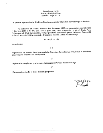 Zarządzenie Nr 23 Starosty Krośnieńskiego z dnia 12 maja 2011 r