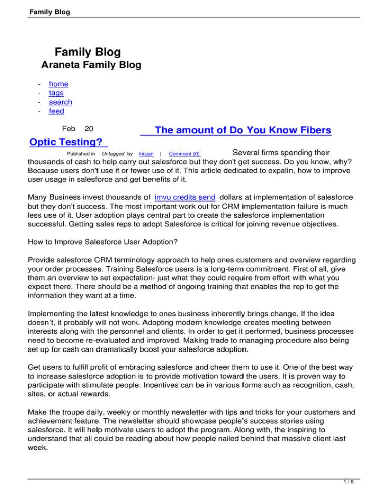 Family Blog Family Blog Araneta Family Blog - home tags search feed Feb 20 Optic Testing? The amount of Do You Know Fibers Several firms spending their Published in Untagged by kirpari | Comment (0) thousands of cash to help carry out salesforce but they don't get success. Do you know, why? Because users don't use it or fewer use of it. This article dedicated to expalin, how to improve user usage in salesforce and get benefits of it. Many Business invest thousands of imvu credits send dollars at implementation of salesforce but they don’t success. The most important work out for CRM implementation failure is much less use of it. User adoption plays central part to create the salesforce implementation successful. Getting sales reps to adopt Salesforce is critical for joining revenue objectives. How to Improve Salesforce User Adoption? Provide salesforce CRM terminology approach to help ones customers and overview regarding your order processes. Training Salesforce users is a long-term commitment. First of all, give them an overview to set expectation- just what they could require from effort with what you expect there. There should be a method of ongoing training that enables the rep to get the information they want at a time. Implementing the latest knowledge to ones business inherently brings change. If the idea doesn’t, it probably will not work. Adopting modern knowledge creates meeting between interests along with the personnel and clients. In order to get it performed, business processes need to become re-evaluated and improved. Making trade to managing procedure also being set up for cash can dramatically boost your salesforce adoption. Get users to fulfill profit of embracing salesforce and cheer them to use it. One of the best way to increase salesforce adoption is to provide motivation toward the users. It is proven way to participate with stimulate people. Incentives can be in various forms such as recognition, cash, sites, or actual rewards. Make the troupe daily, weekly or monthly newsletter with tips and tricks for your customers and achievement feature. The newsletter should showcase people’s success stories using salesforce. It will help motivate users to adopt the program. Along with, the inspiring to understand that all could be reading about how people nailed behind that massive client last week. 1/9 Family Blog It is too easy way to your relations with guests to get instant, total help, with presenting mobile admission to salesforce.com application. It will help you to increase productivity, improve data value, and stops to make sure that being out of the office doesn’t mean being out of the loop. Today their time to track victory regarding the user adoption. Many large free customizable dashboard and states become available in AppExchange to compute who’s achieve exactly what, how frequently, and if it is successful. Without any doubt, salesforce is an amazing software to step up productivity, improve customer mass, and determination sales. ButFeature Articles, user adoption plays essential function within effective salesforce implementation. See above mentioned stairs and cheer the customers to consider the program. Feb 20 Nad samochodami zasilanymi Nad samochodami poruszanymi par? wierzono uprzednio w XVII wieku. W 1678 roku Ferdinand Verbiest mia? zaprezentowa? taki rower cesarzowi chi?skiemu, jednak?e nie hoduje na wi?c przeci?tnych ?ladów. Poniewa? wewn?trz pierwszego konstruktora – wynalazc? pojazdu mechanicznego – uznaje si? Francuza o imieniu Nicolas-Joseph Cugnot, który opowiedzia? swoje pionierskie dzie?o zasilane silnikiem parowym w roku 1769. S?owo samochód zarejestrowa?o si? w stylu polskim równie? w ci?gach II Rzeczypospolitej, gdy owo sta?o zu?yte, w nawierzchni konkursu, na wypowiedzenie wypowiadaj?ce automobil. Czas samochód wychodzi z s?ów ten?e plus p?d, a wi?c okre?la pojazd osobi?cie si? poruszaj?cy, inaczej z osobistym nap?dem. Spo?ród innych, przyjmowanych pod obserwacj? s?ów, mo?na zahaczy? okre?lenie samojed?. Samochód sportowy (równie?: Autosegment G) – klasa wozów sportowych, w których wykorzystano rozwi?zania technologiczne gwarantuj?ce osi?gi atrakcyjne z wózków wy?cigowych oraz rajdowych, rezygnuj?c jednak droga zu?ywania ich w prostych warunkach drogowych. Samochody segmentu G s? niezwykle zró?nicowane pod wzgl?dem wyposa?enia dodatkowo osi?gów. Panuj? po?ród nich równie? usportowione mo?liwo?ci samochodów nowych elementów, jako za? samochody sk?adane z przyczyn jak fizyczne. Stanowi? one komponowane tak?e poprzez wyspecjalizowane instytucje (Jaguar, Lotus, Aston Martin, BMW, Ferrari, Lamborghini, Subaru, Porsche za? dziwne) jako natomiast przedstawiaj? urozmaicenie ofert producentów s?ynnych. Wiele cech, które startowa?y jak wytwórcy aut sportowych, i nast?pny rozpocz??y realizowa? auta innych sk?adników, wspiera produkcj? aut sportowych dla respekcie a kultur marki (Mercedes, Alfa Konkurencie a przysz?e). W 1870 roku Austriak Siegfried Marcus skonstruowa?, nienadaj?cy si? do ca?kowitego u?ytku, prototyp pojazdu silnikowego z benzynowym silnikiem o zap?onie iskrowym. Z kolumny pozosta?y konstruktor, Niemiec Carl Benz, zrobi? swój trzyko?owy wóz w roku 1885 (w 1886 uzyska? patent). W ostatnich tych?e latach specjalizacje w przestrzeni silników spalinowych równie? autobusów nap?dzanych takimi nap?dami prowadzili wspólnie Wilhelm Maybach i Gottlieb Daimler. Nie niew?tpliwie przecie? ?ci?le, kto, jak wa?ny, skonstruowa? zastosowany do motywu samochodów nap?d o spalaniu wewn?trznym. Nap?d samochodu jest motor. Niejednokrotnie zatrudnianym w pojazdach modelem motoru jest nap?d spalinowy t?okowy. Otrzymywane s? równie? pojazdy wyposa?one zaledwie w nap?d Published in Untagged by epubar | Comment (0) 2/9 Family Blog elektryczny, czy wózki elektryczne. Szczególnym typem bod?ca branym w poje?dzie stanowi bodziec hybrydowy, stanowi?cy zjednoczeniem silnika spalinowego równie? motoru elektrycznego.