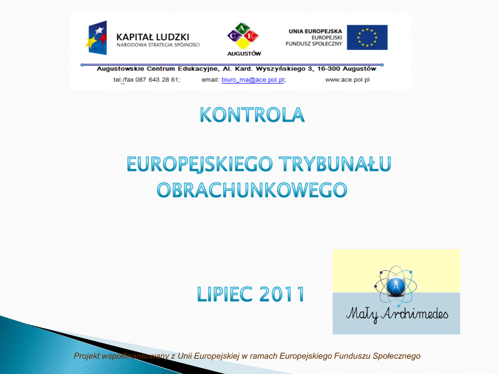 Projekt współfinansowany z Unii Europejskiej w ramach Europejskiego Funduszu Społecznego Augustowskie Centrum Edukacyjne Al. Kard. Wyszyńskiego 3 16-300 Augustów tel. 87 643 28 61, 62 e-mail: [email protected] www.ace.pol.pl Projekt współfinansowany z Unii Europejskiej w ramach Europejskiego Funduszu Społecznego Projekt konkursowy: 1/POKL/3.3.4/09 Priorytet III. Wysoka jakość systemu oświaty Działanie 3.3 Poprawa jakości kształcenia Poddziałanie 3.3.4 Modernizacja treści i metod kształcenia Projekt współfinansowany z Unii Europejskiej w ramach Europejskiego Funduszu Społecznego Projekt realizowany jest w okresie od 01.12.2009 r. do 31.08.2013 r. Wartość projektu => 9 081 725,00 PLN Beneficjenci ostateczni => uczniowie gimnazjum Zasięg terytorialny woj. warmińsko – mazurskie, => podlaskie, mazowieckie, lubelskie Projekt współfinansowany z Unii Europejskiej w ramach Europejskiego Funduszu Społecznego ZAJĘCIA DODATKOWE rozszerzenie treści nauczania z: matematyki oraz trzech przedmiotów spośród: fizyki chemii biologii geografii przedsiębiorczości jako elementu wos-u Projekt współfinansowany z Unii Europejskiej w ramach Europejskiego Funduszu Społecznego KOŁA NAUKOWE rozszerzenie treści nauczania z: matematyki oraz trzech przedmiotów spośród: fizyki chemii biologii geografii przedsiębiorczości jako elementu wos-u Projekt współfinansowany z Unii Europejskiej w ramach Europejskiego Funduszu Społecznego OBOZY NAUKOWE: matematyczno – fizyczny biologiczno - geograficzno - chemiczny Projekt współfinansowany z Unii Europejskiej w ramach Europejskiego Funduszu Społecznego WYJAZDY ZAGRANICZNE: Wyjazd do Deutsches Museum w Monachium i Turm der Sinne w Norymberdze Wyjazd do Europejskiego Ośrodka Badań Jądrowych CERN w Genewie Projekt współfinansowany z Unii Europejskiej w ramach Europejskiego Funduszu Społecznego Wizyty w szkołach ponadgimnazjalnych Wyjazdy na zajęcia laboratoryjne na wyższe uczelnie „Festiwal Innowatorów” – prezentacje popularyzujące naukę Seminarium naukowe dla nauczycieli Projekt współfinansowany z Unii Europejskiej w ramach Europejskiego Funduszu Społecznego PRZYGOTOWANIE DO KONTROLI Projekt współfinansowany z Unii Europejskiej w ramach Europejskiego Funduszu Społecznego 10 1. Dokonano analizy dokumentacji objętej kontrolą celem ponownego sprawdzenia. 2. Sprawdzono wnioski o płatność od początku realizacji projektu celem przypomnienia realizowanych zadań oraz zgromadzenie kompletów dokumentów (faktura, dowodu zapłaty, lista obecności, umowa, dokumentacja przetargowa…) dotyczących poszczególnych zadań. 3. Przypisano poszczególne dokumenty do realizowanych zadań, co jest podstawą do sprawnego przebiegu kontroli. Projekt współfinansowany z Unii Europejskiej w ramach Europejskiego Funduszu Społecznego 4. Realizacje zadań potwierdzono także dokumentacją merytoryczną, skompletowano oświadczenia uczestników, listy obecności, zgłoszenia uczestników. 5. Segregatory uporządkowano chronologicznie i opisano tematycznie. 6. Przypisanie poszczególnych dokumentów do zadań pozwoliło przekazywać je zespołowi kontrolującemu na bieżąco. 7. Każdy pracownik sprawdził dokumentację, za którą odpowiada. Projekt współfinansowany z Unii Europejskiej w ramach Europejskiego Funduszu Społecznego 8. Do kontaktów z zespołem kontrolujących oddelegowano osoby (kierownik projektu, księgowy, asystent) najbardziej zorientowane w projekcie, przepisach, posiadające niezbędną wiedzę i doświadczenie z zakresu finansów publicznych, zamówień publicznych, wytycznych. Wyznaczenie osoby niedoświadczonej skutkuje ogromnym stresem, chaotycznym zachowaniem, brakiem pewności tego co się mówi i wywiera na kontrolujących złe wrażenie. 9. Przygotowano pomieszczenie dla kontrolujących zapewniające spokój i komfort pracy. Projekt współfinansowany z Unii Europejskiej w ramach Europejskiego Funduszu Społecznego 10. O terminie kontroli poinformowano pismem 1,5 miesiąca wcześniej przez IP 2. 11. W piśmie zawarto zakres kontroli i okres za jaki kontrola będzie przeprowadzana. 12. Poproszono o przesłanie rejestru publicznych w ramach projektu. 13. Tydzień przed kontrolą wytypowanych do kontroli. przesłano przeprowadzonych do nas listę zamówień dokumentów Projekt współfinansowany z Unii Europejskiej w ramach Europejskiego Funduszu Społecznego 14. Zgodnie z otrzymanym zestawieniem przygotowano następujące dokumenty: - wynagrodzenie personelu projektu (umowy o pracę, umowy zlecenie, zakres obowiązków) - wypłata transz dla szkół uczestniczących w projekcie (zapotrzebowania na środki szkół, umowy ACE ze szkołami, umowy zlecenie zawarte z nauczycielami prowadzącymi zajęcia w szkołach) - przewóz uczestników na Festiwal Innowatorów (faktura, lista obecności, umowa z firmą, dokumentacja przetargowa) - zakwaterowanie uczestników obozu naukowego (faktura, lista obecności, umowa z firmą, dokumentacja przetargowa) - zajęcia edukacyjne na obozie naukowym (faktura, lista obecności, tematyka zajęć) Projekt współfinansowany z Unii Europejskiej w ramach Europejskiego Funduszu Społecznego KONTROLA Projekt współfinansowany z Unii Europejskiej w ramach Europejskiego Funduszu Społecznego 16 1. Omówiono z zespołem kontrolującym założenia i cele projektu, przedstawiono szersze spojrzenie na specyfikę naszej działalności, na jej szczególne uwarunkowania i rozwiązania. 2. Dostarczono osobom z zespołu kontrolującego wskazane wcześniej dokumenty. 3. Należało dobrze zrozumieć istotę pytań kontrolujących. Projekt współfinansowany z Unii Europejskiej w ramach Europejskiego Funduszu Społecznego 4. Zachowano relacje z kontrolującymi zgodne z zasadami komunikacji interpersonalnej: profesjonalne, bez nadmiernej gościnności, bez niepotrzebnego eskalowania konfliktu poprzez kwestionowanie podstawowych działań kontrolujących, nieuzasadnione upierania si