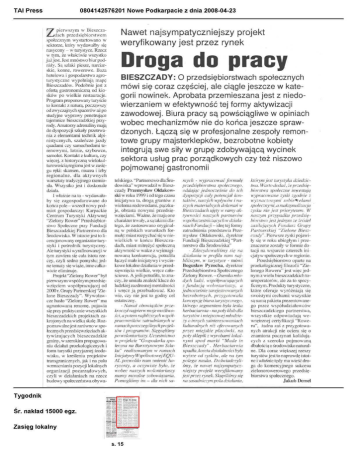 TAI Press 0804142576201 Nowe Podkarpacie z dnia 2008-04-23 pierwszym w Bieszczadach przedsiębiorstwem społecznym wystartowano w sektorze, który wydawałby się nasycony - w turystyce. Rzecz w tym, że właściwie wszystko już jest. Jest mnóstwo biur podróży. Są szlaki piesze, narciarskie, konne, rowerowe. Baza hotelowa i gospodarstwa agroturystyczne wypełniają mapę Bieszczadów. Podobnie jest z ofertą gastronomiczną od kiosków po wielkie restauracje. Program proponowany turyście to kontakt z natura, począwszy od zwyczajnych spacerów aż po studyjne wyprawy penetrujące tajemnice bieszczadzkiej przyrody. Amatorzy adrenaliny mają do dyspozycji szkół)' przetrwania z elementami technik alpinistycznych, szaleńcze jazdy ąuadami czy samochodami terenowymi, lotnie, szybowce, samolot. Kontakt z kulturą, czy więcej, z historyczną wielokulturowością regionu jest w zasięgu ręki: skansen, muzea i izby regionalne, dla aktywnych warsztaty tradycyjnego rzemiosła. Wszystko jest i doskonale działa. I właśnie na to - wydawałoby się zagospodarowane do końca pole - wszedł nowy podmiot gospodarczy: Karpackie Centrum Turystyki Aktywnej •'Zielony Rower" Przedsiębiorstwo Społeczne przy Fundacji Bieszczadzkiej Partnerstwo dla Środowiska. W istocie jest to licencjonowany organizator turystyki i pośrednik turystyczny. Ale turystyki wyrafinowanej i w tym zawiera się cała istota rzeczy, czyli sedno pomysłu; jedne tematy się wiąże, inne całkowicie eliminuje. Projekt "Zielony Rower" był pierwszym wspólnym przedsięwzięciem współpracującej od 2000 r. Grupy Partnerskiej "Zielone Bieszczady". Wywoławcze hasło "Zielony Rower" ma ugruntowaną renomę, pojawia się przy praktycznie wszystkich bieszczadzkich projektach zakrojonych na wielką skalę. Rozpoznawalne jest zarówno w społecznych przedsięwzięciach aktywizujących bieszczadzkie gminy, w szerokim propagowaniu działań proekologicznych i form turystki przyjaznej środowisku, w kreśleniu projektów transgranicznyeh, jak i na polu wzmacniania pozycji lokalnych organizacji pozarządowych, czyli w działaniach na rzecz budowy społeczeństwa obywa- Z Nawet najsympatyczniejszy projekt weryfikowany jest przez rynek Droga do pracy BIESZCZADY: O przedsiębiorstwach społecznych mówi się coraz częściej, ale ciągle jeszcze w kategorii nowinek. Aprobata przemieszana jest z niedowierzaniem w efektywność tej formy aktywizacji zawodowej. Biura pracy są powściągliwe w opiniach wobec mechanizmów nie do końca jeszcze sprawdzonych. Łączą się w profesjonalne zespoły remontowe grupy majsterklepków, bezrobotne kobiety integrują swe siły w grupę zdobywającą wycinek sektora usług prac porządkowych czy też niszowo pojmowanej gastronomii lelskiego. "Partnerstwo dla Środowiska" wprowadził w Bieszczady Przemysław Ołdakowski w roku 1999 i od lego czasu inicjatywa ta, drogą grantów z wieloma rodowodami, pączkuje, obrasta nowymi przedsięwzięciami. Ważne, że mają one charakter trwały, a są takimi dlatego, że zastosowano oryginalną w polskich warunkach formułę: miast rozpychać się w niewielkich w końcu Bieszczadach, miast mitrężyć społeczną aktywność w walce z wyimaginowaną konkurencją, potrafiła łączyć małe inicjatywy i wycinkowe lokalne działania w przedsięwzięcia wielkie, wręcz całościowe. A jeśli potrafiła, to znaczy, że umiała znaleźć klucz do ludzkiej zazdrosnej mentalności i wręcz ją przebudować. Kto wie, czy nie jest to godny cel ostateczny. - Nawał obowiązków przekroczył najpierw moje możliwości, a potem najbliższych współpracowników zatrudnianych vr ramach poszczególnych projektów i programów. Sięgnęliśmy po wolontariuszy. Uczestnictwo w projekcie "Gospodarka społeczna na Bursztynowym Szlaku" realizowanym w ramach Inicjatywy WspólnotowejEQUAL pozwoliło nam zmienić horyzonty, a oczywiste było, że wobec naszych wolontariuszy mamy moralne zobowiązania. Pomogliśmy im - dla nich sa- Tygodnik Śr. nakład 15000egz. Zasięg lokalny s. 15 mych - wypracować formułę przedsiębiorstwa społecznego, oddając jednocześnie do ich dyspozycji cały potencjał kontaktów, naszych wpływów i naszych materialnych dokonań w Bieszczadach ujęty w ramy aktywności naszych partnerów współuczestniczących w działaniach Fundacji— ideę tej formy zatrudnienia przedstawia Przemysław Ołdakowski, dyrektor Fundacji Bieszczadzkiej "Partnerstwo dla Środowiska" - Zdecydowaliśmy się na działania w profilu nam najbliższym, w- turystyce - mówi Bogusław Pyzocha. dyrektor Przedsiębiorstwa Społecznego Zielony Rower. — Ósemka młodych ludzi, współpracujących z fundacją wolontariuszy, a jednocześnie zarejestrowanych bezrobotnych, przygotowała koncepcję biura turystycznego, którego segmentem była leska herbaciarnia - na poły klub dla turystów i miejscowej młodzieży o innych zainteresowaniach kulturalnych niż oferowanych przez miejskie placówki, na poły sklepik z wyrobami lokalnymi spod marki "Madę in Bieszczady". Herbaciarnia upadła, koszta działalności były wyższe od zysków, ale na tym polega nauka. Doświadczyliśmy, że nawet najsympatyczniejszy projekt weryfikowany jest przez lynek. Skupiliśmy się na zasadniczym polu działania, którym jest turystyka dziedzictwa. Warto dodać, że przedsiębiorstwa społeczne inwestują wypracowane zyski zgodnie z wyznaczonymi sobiefelami społecznymi, a maksymalizacja zysku nie jest priorytetem. W naszym przypadku przedsiębiorstwo jest jednym ze źródeł zasilających Fundusz Grupy Partnerskiej "Zielone Bieszczady" . Pierwsze zyski pojawiły się w roku ubiegłym i przeznaczone zostały w formie dotacji na wsparcie czterech inicjatyw społecznych w regionie. Przedsiębiorstwo oparte na proekologicznej filozofii "Zielonego Roweru" jest więc jednym z wielu bieszczadzkich touroperatorów, ale za to specyficznym. Produkty turystyczne, które oferuje wyróżniają się swoistymi cec