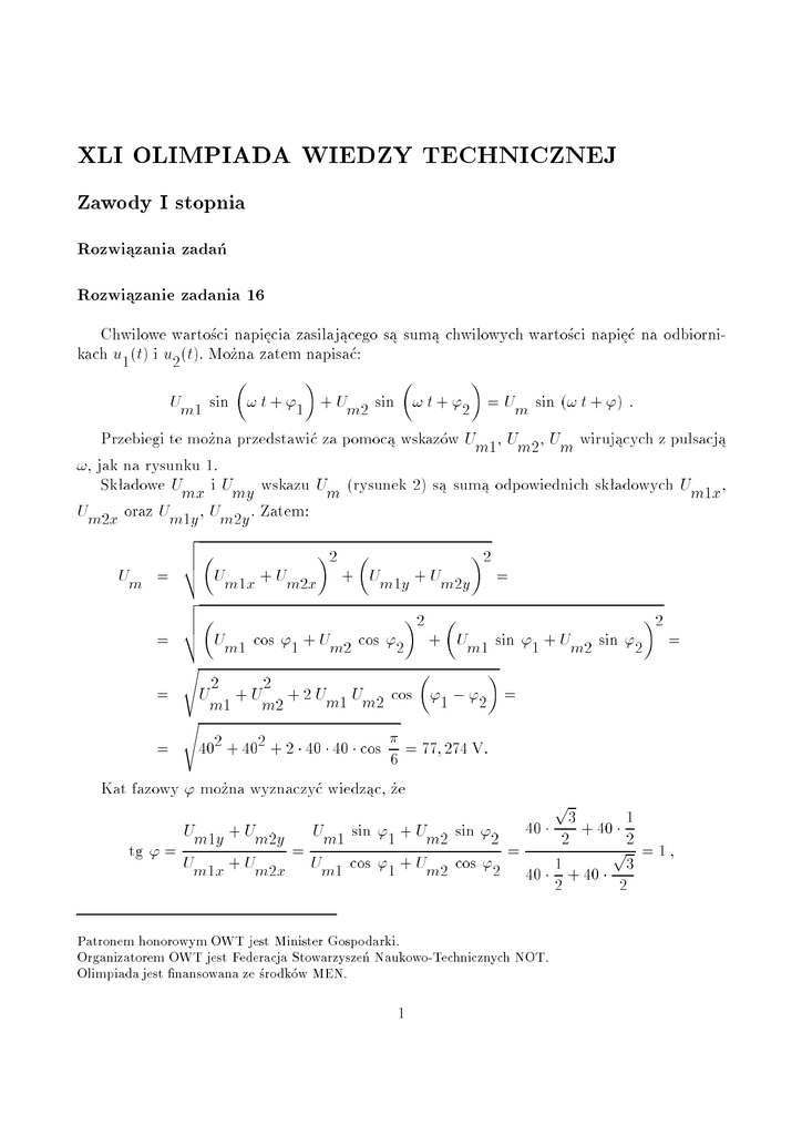 Um = vuut = vuut s s - Olimpiada Wiedzy Technicznej