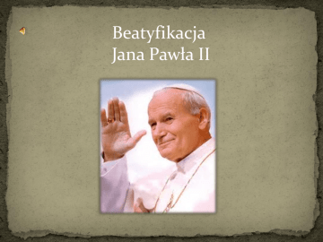 Beatyfikacja Jana Pawła II Beatyfikacja (łac. beatificare 'wyróżniać') – akt kościelny wydawany przez Kościół katolicki, uznający osobę zmarłą za błogosławioną, zezwalający na publiczny kult, ale o charakterze lokalnym (np. w diecezji). Akt taki wydaje się po pozytywnym rozpatrzeniu procesu beatyfikacyjnego. We wczesnym średniowieczu beatyfikacji dokonywano spontanicznie, później wymagana była zgoda Biskupów i Stolicy Apostolskiej. Od roku 1634 beatyfikację może zatwierdzić tylko papież. Proces beatyfikacyjny może się rozpocząć najwcześniej 5 lat po śmierci kandydata Dokumentacja zbierana jest na szczeblu lokalnym, w diecezji do której należał kandydat. Następnie wniosek o beatyfikację przekazany jest Stolicy Apostolskiej, gdzie rozpatruje go specjalna komisja. Kluczowymi momentami procesu jest stwierdzenie heroiczności cnót Sługi Bożego oraz kanoniczne stwierdzenie, że za jego wstawiennictwem dokonał się co najmniej jeden cud. Brane są pod uwagę jedynie cuda, które miały miejsce po śmierci. Nieco inaczej przebiega proces męczenników, gdzie do beatyfikacji cud nie jest wymagany. Obecnie proces beatyfikacyjny regulowany jest przez konstytucję apostolską Divinus Perfectionis Magister wydaną 25 stycznia 1983 roku przez papieża Jana Pawła II. Uroczystość wyniesienia Jana Pawła II na ołtarze przypadnie w Niedzielę Miłosierdzia Bożego, święta ustanowionego przez papieża Polaka. Zmarł on 2 kwietnia 2005 roku, w wigilię tej uroczystości. Proces beatyfikacyjny Jana Pawła II rozpoczął się właściwie żądaniem: Santo subito (wł. "święty natychmiast"); był to zwrot pojawiający się na transparentach z uroczystości pogrzebowych papieża Jana Pawła II na Placu św. Piotra w Watykanie 8 kwietnia 2005 roku. W ten sposób wierni Kościoła katolickiego domagali się od przyszłego papieża, jeszcze przed jego wyborem, aby niezwłocznie po rozpoczęciu nowego pontyfikatu podjął procedurę zmierzającą do beatyfikacji Jana Pawła II. Cierpiąca na zaawansowanego Parkinsona francuska siostra w dniu śmierci papieża zaczęła odczuwać potworny ból. Choroba znów zaczęła się zaostrzać. Ale siostry zakonne nie traciły wiary. Od 13 maja 2005 r. zaczęły się modlić do Jana Pawła II, by wstawił się u Najświętszej Maryi o uzdrowienie chorej Marie. I stał się cud. 2 czerwca zakonnica obudziła się zupełnie zdrowa. - Zwykle mało spałam z powodu bólu. Gdy się obudziłam, od razu czułam, że coś się we mnie zmieniło. Moje ciało było zupełnie inne tłumaczyła. Komisja złożona z kardynałów i biskupów ostatecznie uznała cud niewytłumaczalne ze strony medycznej uzdrowienie siostry Marie za wstawiennictwem papieża Polaka, dekret podpisał Benedykt XVI. Beatyfikacja Jana Pawła II odbędzie się 1 maja w Watykanie. - To wielki dzień. Uzdrowiona siostra Marie Simon-Pierre