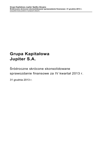 Śródroczne skrócone skonsolidowane sprawozdanie finansowe za IV kwartał 2013 r.