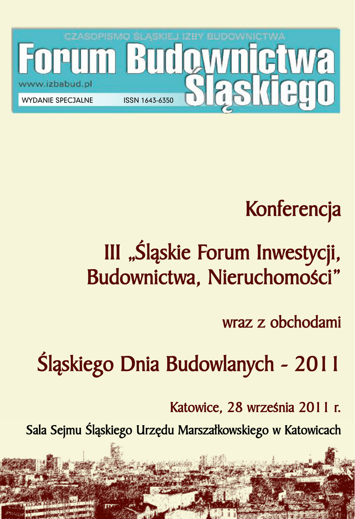 WYDANIE SPECJALNE ISSN 1643-6350 Konferencja III „lskie Forum Inwestycji, Budownictwa, Nieruchomoci” wraz z obchodami lskiego Dnia Budowlanych - 2011 Katowice, 28 wrzenia 2011 r. Sala Sejmu lskiego Urzdu Marszakowskiego w Katowicach WSPÓLNE PRZEDSIWZICIE Szanowni Pastwo! Konieczne jest radykalne usprawnienie procesów inwestycyjno-budowlanych. Likwidacja lub ograniczenie bardzo licznych barier prawnych i instytucjonalnych w tych procesach. Moe i powinno to nastpi poprzez systemowe i kompleksowe zreformowanie prawa inwestycyjnego. Spójn i skoordynowan wzajemnie zmian regulacji prawnych, obejmujcych planowanie i zagospodarowanie przestrzenne, prawo budowlane, przepisy rodowiskowe i prawo zamówie publicznych. Take Kodeksu Postpowania Administracyjnego i Kodeksu Cywilnego. Rekomendacje do nowelizacji tych ustaw, poprzedzone diagnoz stanu obecnego, stanowi gówny cel programowy konferencji – „III lskie Forum Inwestycji, Budownictwa, Nieruchomoci”. Nieprzypadkowo. Pierwszym warunkiem spenienia tego celu jest dalsza konsolidacja rodowisk technicznych i organizacji pozarzdowych budownictwa dla uzyskania co najmniej zapewnienia, e oczekiwana racjonalizacja procesów inwestycyjnych bdzie priorytetem legislacyjnym Parlamentu i Rzdu nowej kadencji. Publikacje autorskie uczestników programu tematycznego konferencji, reprezentujcych krajowe i regionalne samorzdy zawodowe i gospodarcze budownictwa, autorytetów naukowych, ekspertów i praktyków – nie ograniczaj si tylko do postulatów. Przeciwnie. Zawieraj oceny wasne stanu obecnego, identyfikuj bariery w prowadzeniu dziaalnoci inwestycyjnej i budowlanej, formuuj proponowane wnioski, a nawet szczegóowe rozwizania i zapisy prawne. Odnosz si take do aktualnych inicjatyw rzdowych, dotyczcych przedstawionego projektu zaoe do kodeksu budowlanego oraz do prowadzenia publicznej debaty zamawiajcych i wykonawców o systemie zamówie publicznych. Skadamy wyrazy podzikowania wspóorganizatorom i partnerom merytorycznym konferencji, czonkom jej Rady Programowo-Naukowej, kadrze kierowniczej przedsibiorstw lskiej Izby Budownictwa i czonkom lskiej Okrgowej Izby Budownictwa – za konstruktywny i uyteczny wspóudzia w przygotowaniu tego wspólnego przedsiwzicia. Przewodniczcy Rady lskiej Okrgowej Izby Inynierów Budownictwa Wiceprezes IB Prezydent lskiej Izby Budownictwa Przewodniczcy ,,Forum” Franciszek Buszka Tadeusz Wnuk Forum Budownictwa lskiego - wydanie specjalne 3 III LSKIE FORUM INWESTYCJI, BUDOWNICTWA, NIERUCHOMOCI PATRONAT HONOROWY MINISTER INFRASTRUKTURY MARSZAEK WOJEWÓDZTWA LSKIEGO WOJEWODA LSKI REKTOR POLITECHNIKI CZSTOCHOWSKIEJ REKTOR POLITECHNIKI LSKIEJ ORGANIZATORZY KONFERENCJI lska Okrgowa Izba Inynierów Budownictwa w Katowicach Przewodniczcy Rady – Franciszek Buszka 4 Forum Budownictwa lskiego - wydanie specjalne lska Izba Budownictwa w Katowicach Prezydent Izby – Tadeusz Wnuk III LSKIE FORUM INWESTYCJI, BUDOWNICTWA, NIERUCHOMOCI WSPÓORGANIZATORZY KONFERENCJI Polska Izba Inynierów Budownictwa Prezes Krajowej Rady – Andrzej Roch Dobrucki Polski Zwizek Inynierów i Techników Budownictwa Przewodniczcy Rady – Wiktor Piwkowski Izba Projektowania Budowlanego w Warszawie Prezes – Ksawery Krassowski Regionalna Izba Gospodarcza w Katowicach Prezes – Tadeusz Donocik RADA PROGRAMOWA KONFERENCJI prof. zw. dr hab. h. c. Andrzej S. Barczak – Rektor lskiej Wyszej Szkoy Zarzdzania im. Gen. J. Zitka w Katowicach, Prezes Polskiego Towarzystwa Ekonomicznego w Katowicach, Czonek Prezydium PAN prof. dr hab. in. Jan lusarek – Prorektor ds. Nauki i Wspópracy z Przemysem Politechniki lskiej w Gliwicach prof. dr hab. Andrzej Borowicz – Katedra Inwestycji i Nieruchomoci, Uniwersytetu ódzkiego prof. dr hab. Jan Grabowski – Kierownik Katedry Prawa Gospodarczego Uniwersytetu lskiego prof. dr hab. Genowefa Grabowska – Kierownik Katedry Prawa Midzynarodowego, Publicznego i Prawa Europejskiego Uniwersytetu lskiego prof. dr hab. Stanisawa Kalus – Katedra Prawa Cywilnego i Prawa Prywatnego Midzynarodowego Uniwersytetu lskiego prof. dr hab. in. Jarosaw Rajczyk – Dziekan Wydziau Budownictwa Politechniki Czstochowskiej prof. dr hab. in. Jerzy Skowski – Dziekan Wydziau Budownictwa Politechniki lskiej w Gliwicach Forum Budownictwa lskiego - wydanie specjalne 5 III LSKIE FORUM INWESTYCJI, BUDOWNICTWA, NIERUCHOMOCI PARTNERZY MERYTORYCZNI K.P.B.P. „Budus” S.A. w Katowicach Prezes Zarzdu – Leon Ucka Drogowa Trasa rednicowa S.A. w Katowicach Prezes Zarzdu – Ireneusz Maszczyk P.B.O.iU.T. „lsk” Sp. z o.o. w Katowicach Prezes Zarzdu – Jarosaw elazowski P.P.W.B. „Probet” Sp. z o.o. w Katowicach Prezes Zarzdu – Tomasz Tyc WARBUD S.A. w Warszawie Prezes Zarzdu – Wodzimierz Wodarczyk GC INVESTMENT S.A. w Katowicach Prezes Zarzdu – Micha Goli MOSTOSTAL WARSZAWA S.A. w Warszawie Prezes Zarzdu – Jarosaw Popioek TERMOPIAN Sp. z o.o. w Czechowicach-Dziedzicach Prezes Zarzdu – Sylwester Bdkowski Wielkopolska Izba Budownictwa w Poznaniu Prezes Zarzdu – Zenon Kierczyski PARTNERZY BIZNESOWI Wolters Kluwer Polska Sp. z o.o. Prezes – Wodzimierz Albin 6 Forum Budownictwa lskiego - wydanie specjalne MTB 24 Business Travel Przedstawiciel Regionu – Krystyna liwiok III LSKIE FORUM INWESTYCJI, BUDOWNICTWA, NIERUCHOMOCI PROGRAMKONFERENCJI 9.30 – 10.00 Rejestracja uczestników konferencji. Hol sali Sejmu lskiego Urzdu Marszakowskiego w Katowicach. Otwarcie konferencji, przedstawienie jej celów programowych oraz uczestników poszczególnych sesji tematycznych. 10.00 – 10.15 Prezydent lskiej Izby Budownictwa – Tadeusz Wnuk, Przewodniczcy Rady lskiej Okrgowej Izby inynierów Budownictwa – Franciszek Buszka. 10.15 – 11.00 lski Dzie Budowlanych - 2011. 9 Wykad inaugurujcy konferencj – Prof. dr hab. h. c. Andrzej S. Barczak – Rektor lskiej Wyszej Szkoy Zarzdzania 11.00 – 11.15 im. Gen. J. Zitka w Katowicach. „Znaczenie inwestycji i ich efektywnej realizacji dla wzrostu gospodarczego kraju”. SESJA I: Bariery procesów