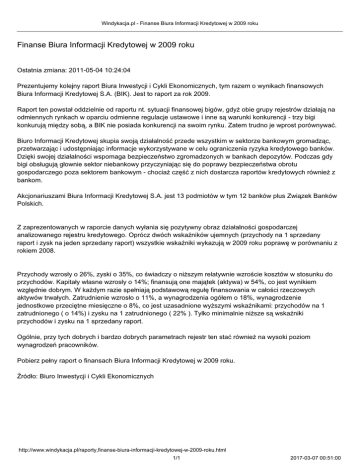 Finanse Biura Informacji Kredytowej w 2009 roku